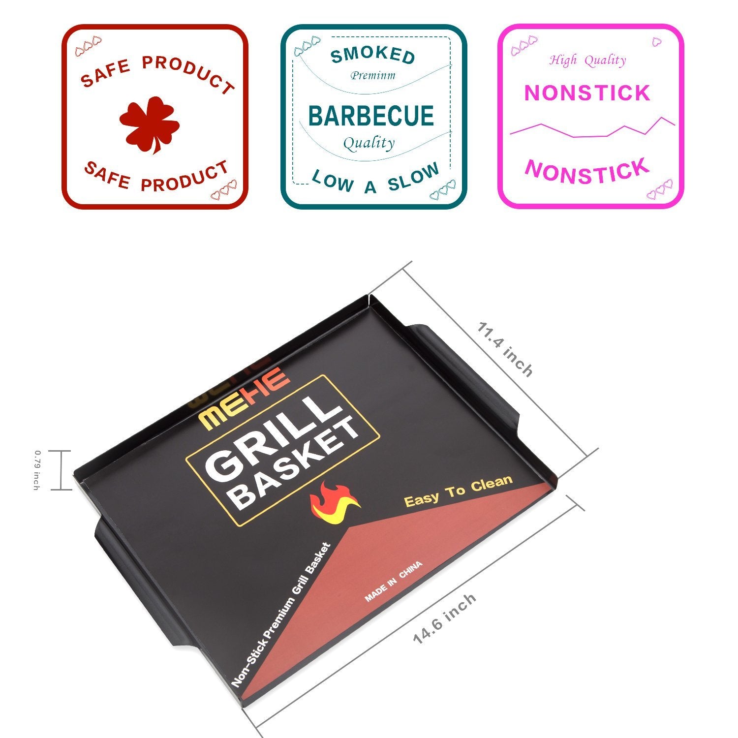 MEHE Vegetable Grill Basket,Nonstick Grill Pan 14.6 "x11.4 Thicken Grilling Topper BBQ Accessory for Grilling Veggie, Fish, Shrimp, Meat, Camping Cookware (No Hand)