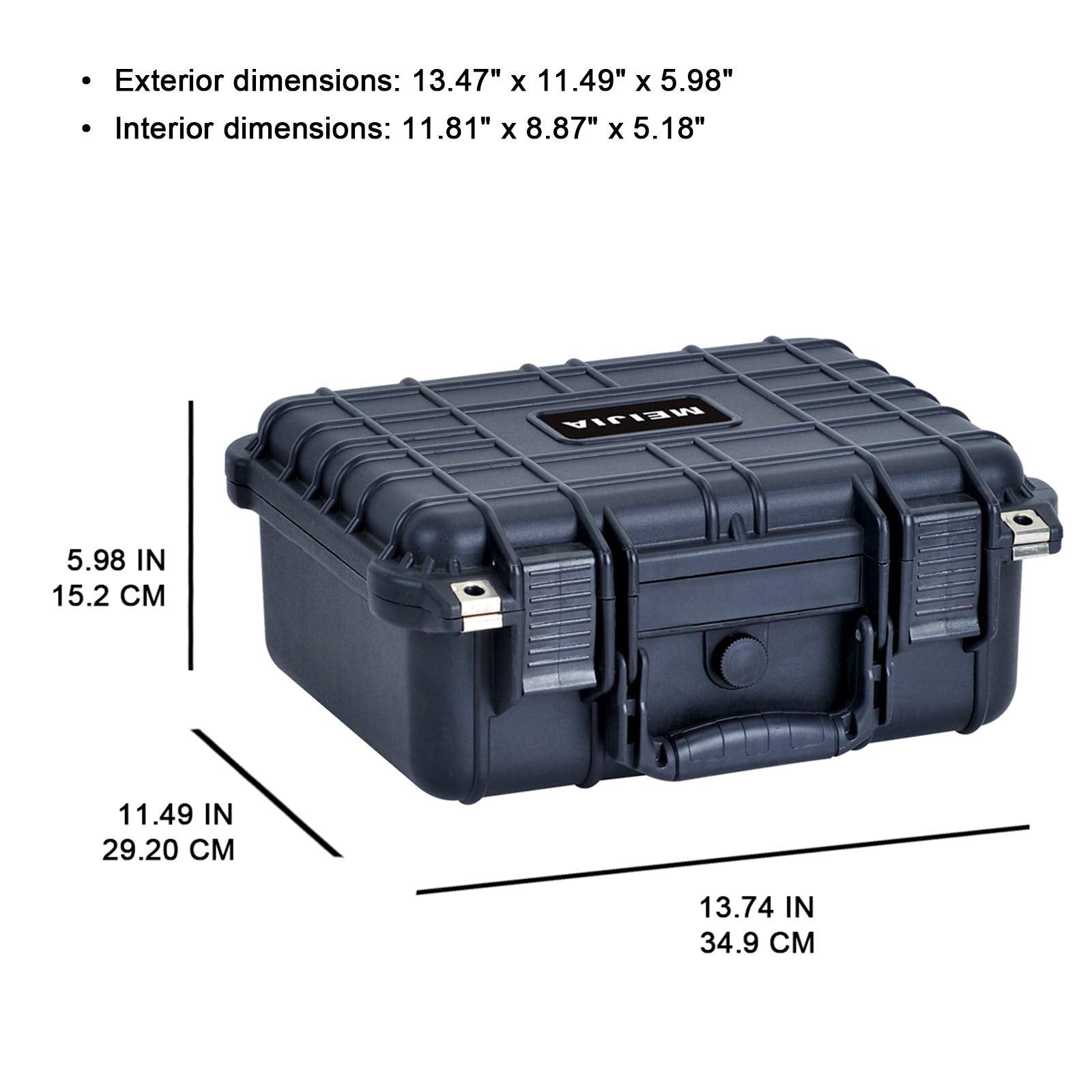 MEIJIA Portable All Weather Waterproof Protective Case,Hard Case,Camera Case With Customized Fit Foam,Fit Use of Drones,Camera,Equipments,Pistols,Elegant Black,13.35 x11.63x5.98inches