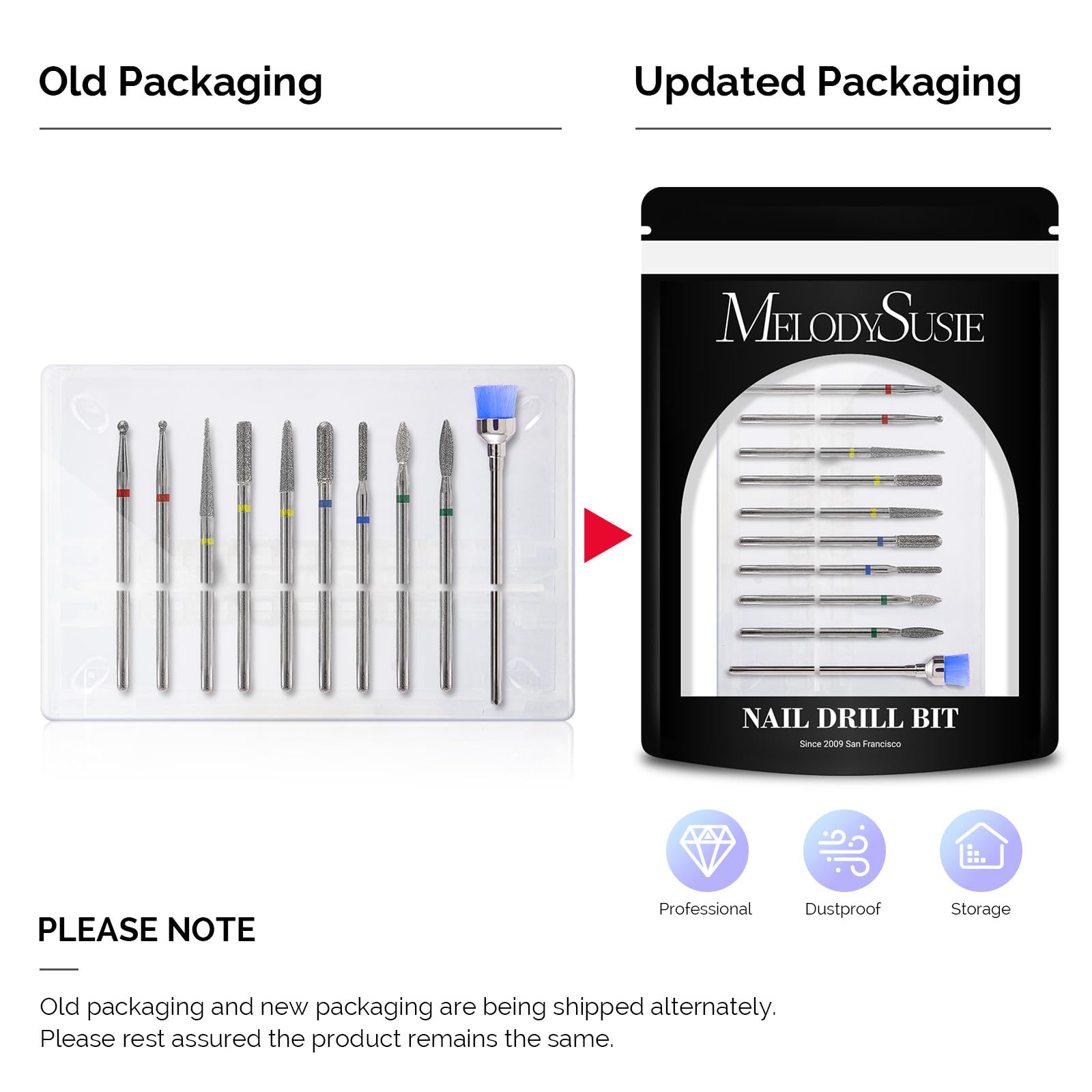 MelodySusie 10pcs Nail Drill Bits Set, 3/32 Inch Diamond Cuticle Nail Bits Kit for Nail Drill E-File, Manicure Pedicure Remover Tools for Acrylic Gel Nails, Salon Home Nail Care Supplies, Silver