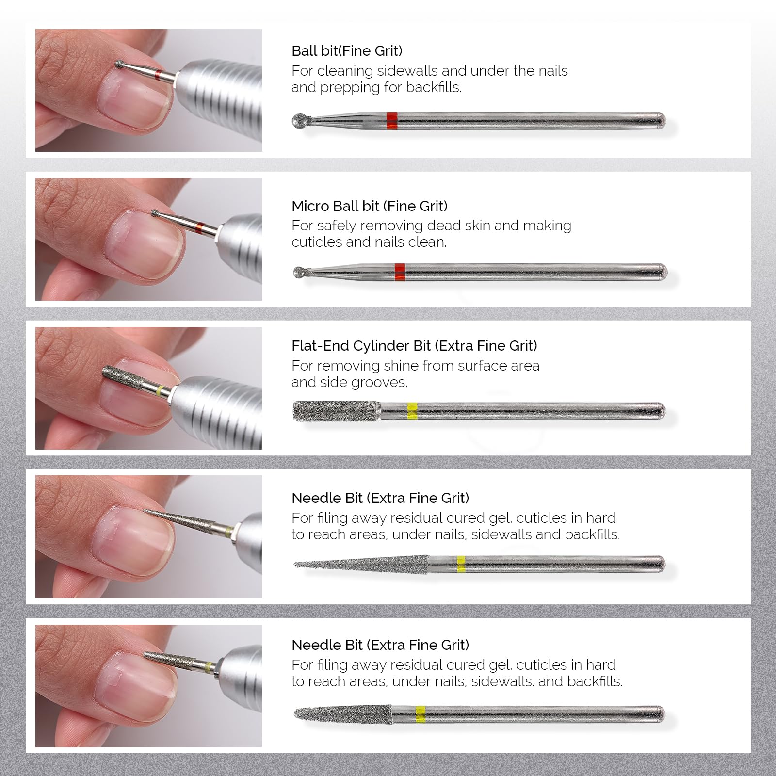 • Safety Cuticle Nail Bits: Protect your skin from being harmed with superior craftsmanship and well-tested design. Gentle and smooth used, suitable for Nail Tech or Beginners.