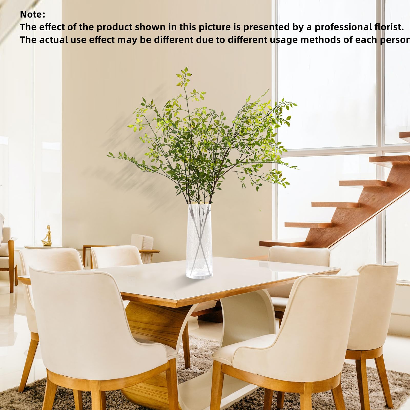 • Faux Branches Size: The size of artificial Nandina is 43.3' in lenght, It has 1 main branch and 3 secondary branches,If it is a floor vase, it is recommended to buy 6 PCS. If you like a very lush feeling, you can buy 6 PCS. If it is a large desktop vase, it is recommended to buy 4 PCS, and small desktop 2PCS . You can trim the Length of branches to you need. , Great artificial branches for vase.The effect of the product shown in this picture is presented by a professional florist. The actual use effect may be different due to different usage methods of each person