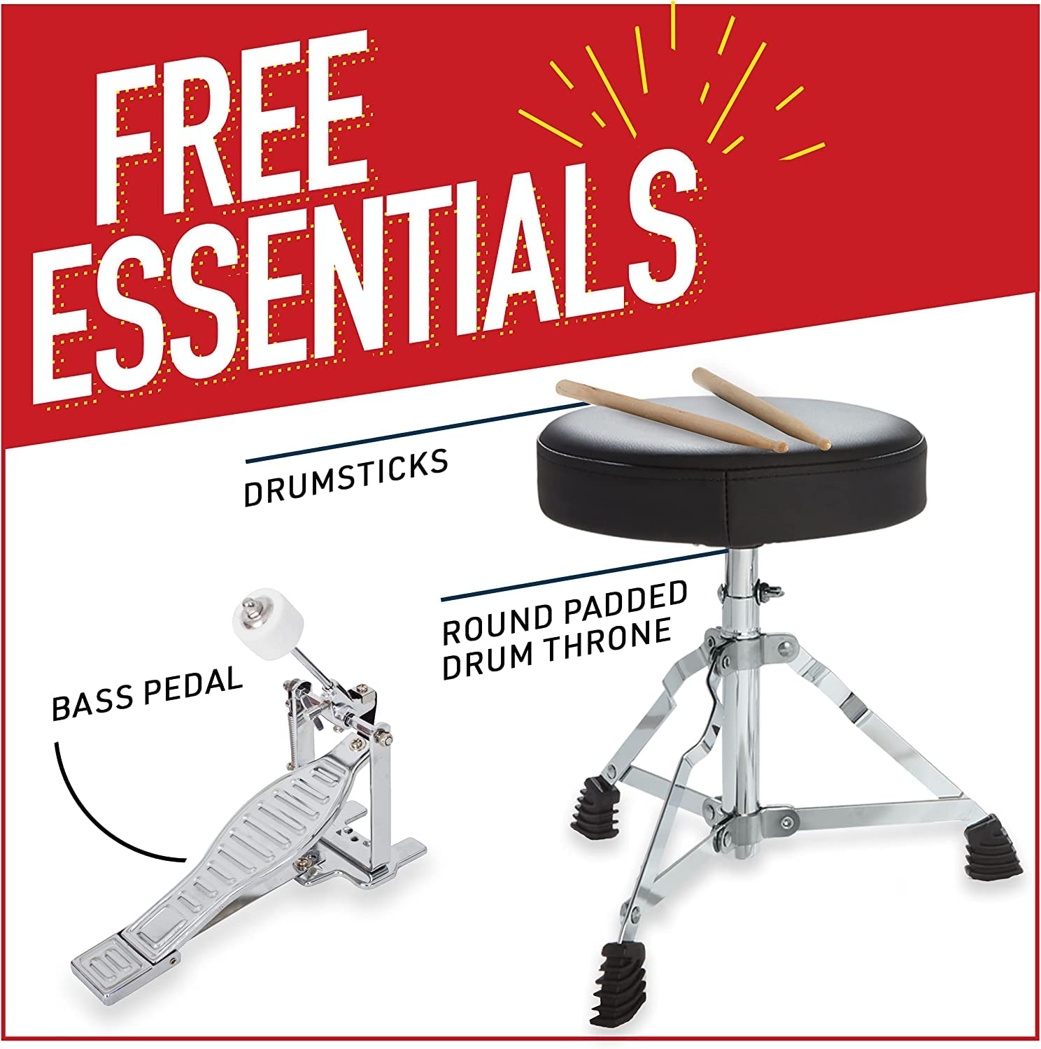 • Perfect Drum set: The 3-piece junior drum set is an 'all-in-one' fully functional drum kit designed specifically for entry level drummers. It has everything you need to get set up and playing in no time, let everyone experience the joy of rhythm