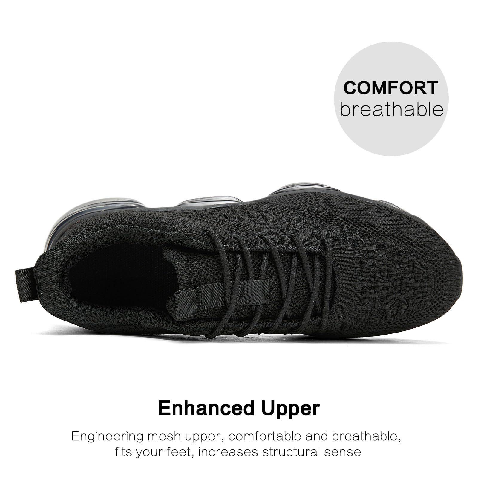 Men's Air Cushion Running Shoes Breathable Tennis Fashion Sneakers Non Slip Workout Casual Sport Shoes Gym Training Comfortable Walking Shoes All Black