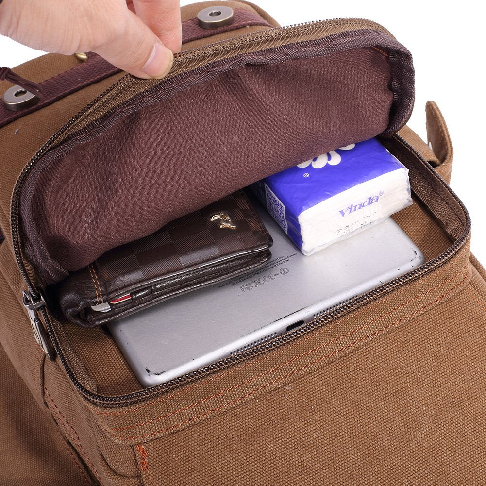 Mens Vintage Canvas Shoulder Bag Military Messenger Sling Bags Chest Leather Bag(SG255-Canvas Khaki)