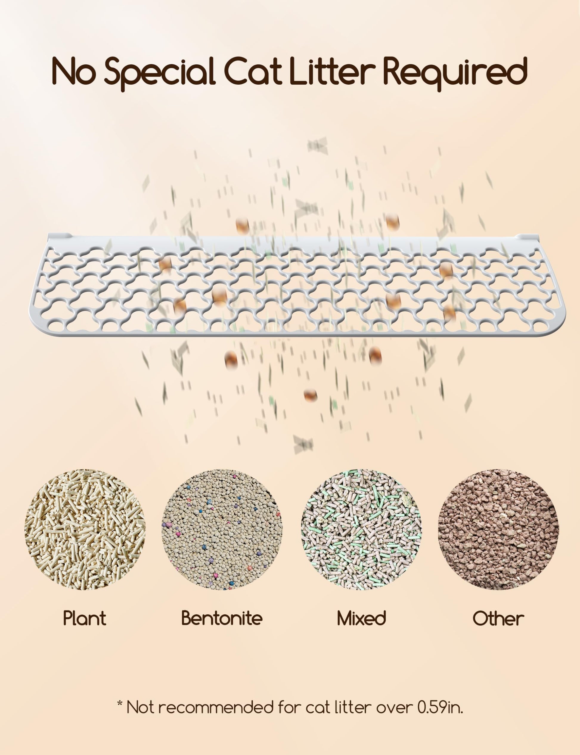 • 【Self Cleaning & Universal Cat Litter】Cat litter box self-cleaning system auto cleans after cat leaves the litter box, and separates cat waste into the enclosed waste bin. Litter box is suitable for various clumping cat litter types with length <15mm. Please pay attention not to pour cat litter beyond the warning line, otherwise the excess cat litter will be cleaned up