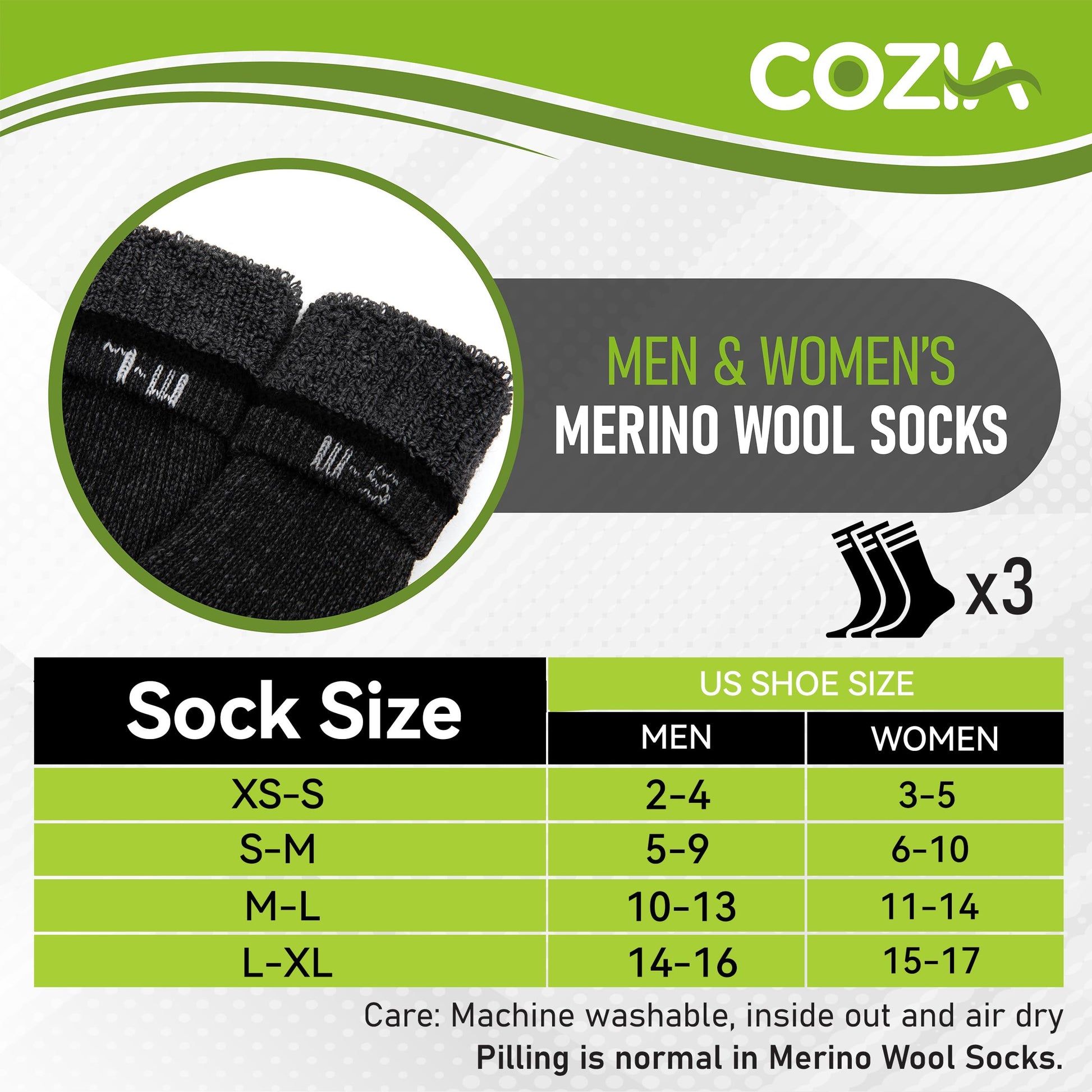 Merino Wool Socks Casual Warm Socks for Winter Cozy Boot Socks for Men & Women Black ML