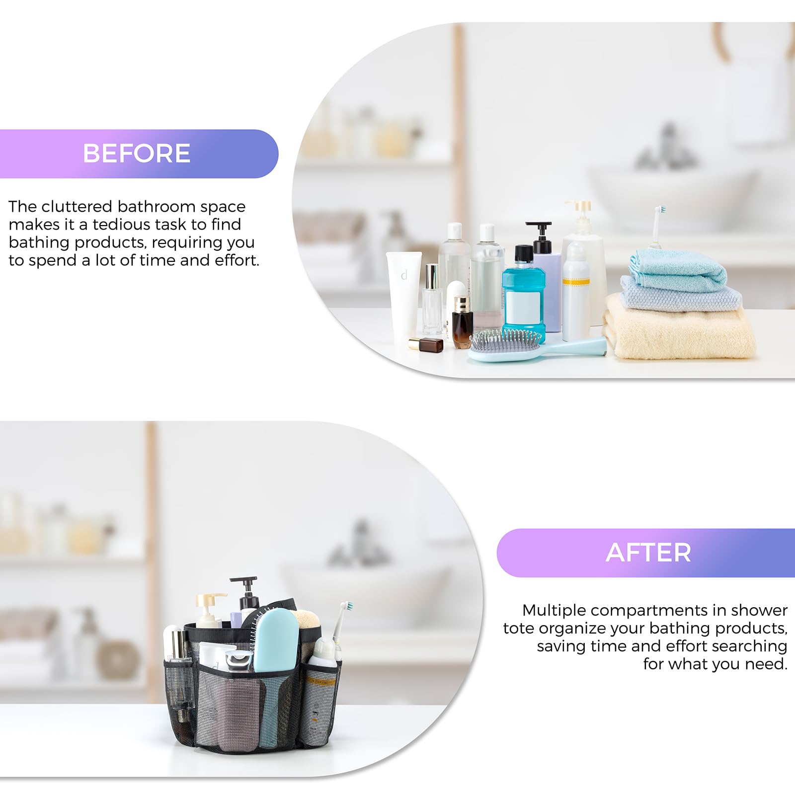 • High-Quality:The mesh shower caddy portable is crafted with sturdy and durable mesh material and our shower tote bag features a base made with Oxford fabric, providing more substantial wear and tear resistance. the shower tote is also equipped with a handle which make it convenient for you to hang the shower bag onto any hanging hooks.