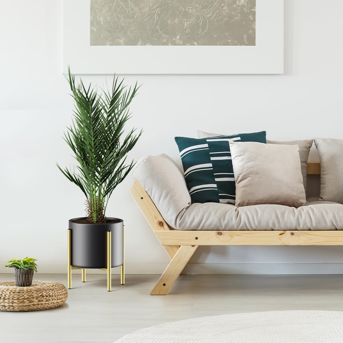 • STYLISH MODERN DESIGN & VERSATILE: Stylish and modern design with classic mid-century style, well fits for most home decor and furniture and efficient to be settled in the corner of your living room, patio garden or balcony. Perfect for displaying and matching with white cylinder ceramic planter, cement planter or brass metal planter.
