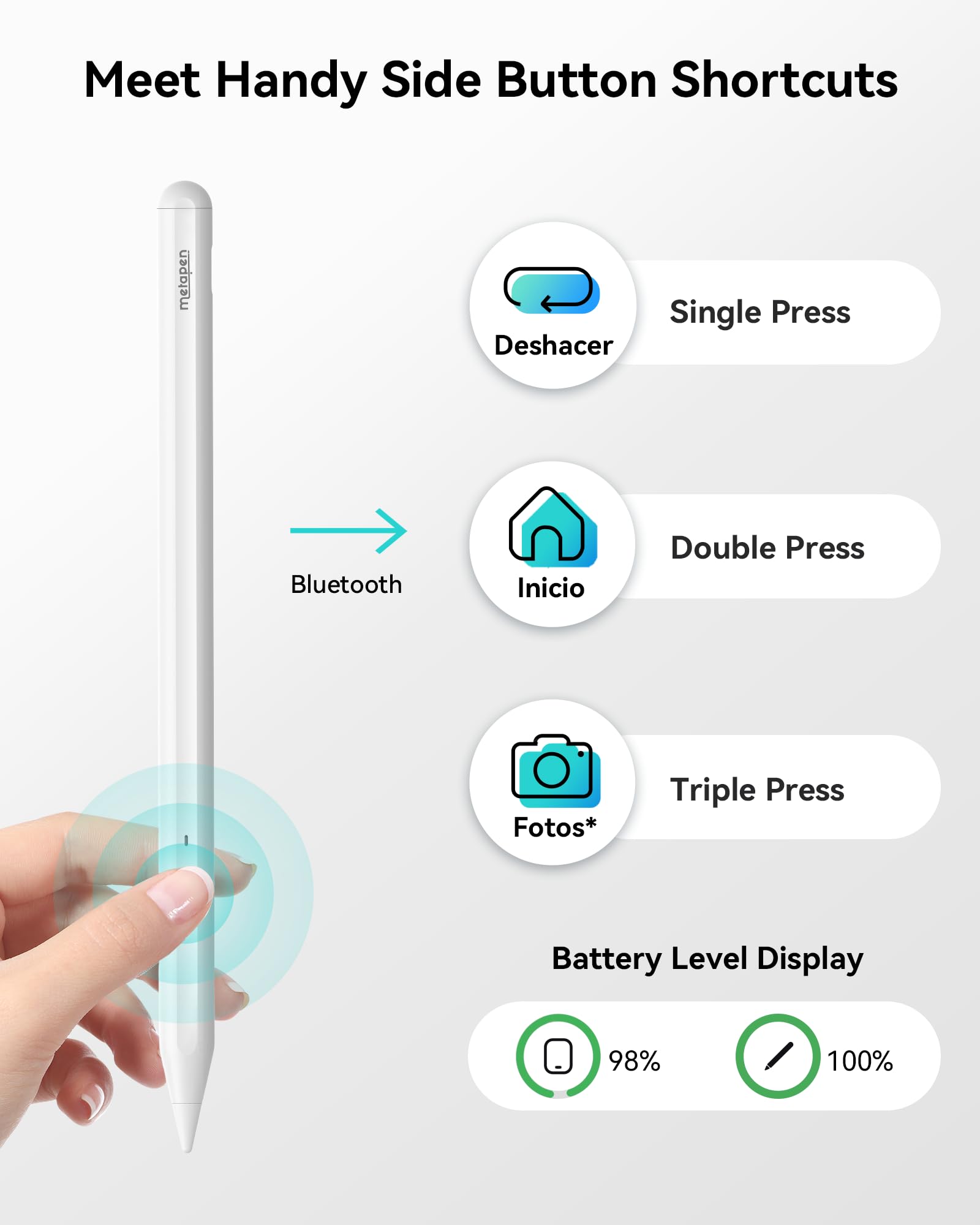 Metapen Pencil A11 for iPad 6th-11th, Quick Button & Bluetooth, 2X Fast Charge Stylus Pen for 2018-2025 Apple iPad a16/11/10/9/8/7/6th Gen, Pro 12.9/11/13-inch M4, Air3/4/5/M2/M3, Mini 5/6th
