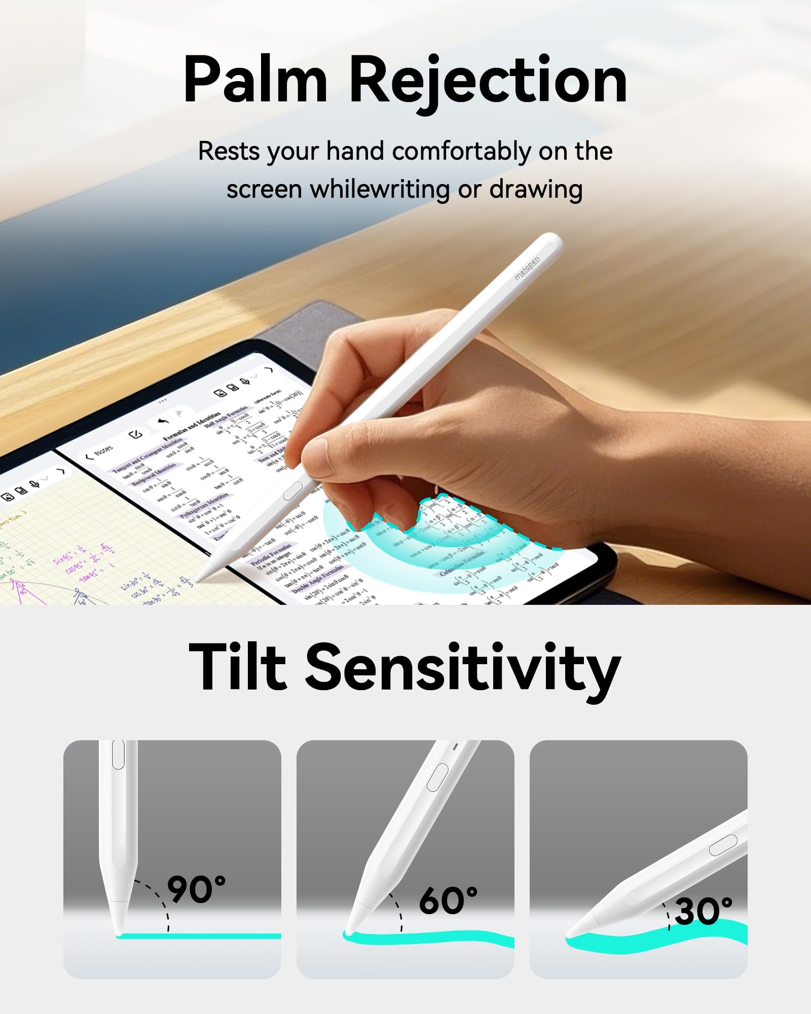 • 【Double Strong Magnets & Palm Rejection】Writing on your iPad has never been easier with the Stylus Pencil A11. With palm rejection, you can write or draw naturally without accidental touches. The built-in strong magnets let the pen attach firmly to your iPad, making it easy to carry and store. Note: Magnetic attachment is not supported on iPad Air (3rd Gen), iPad (6th–10th Gen), or iPad mini (5th Gen)