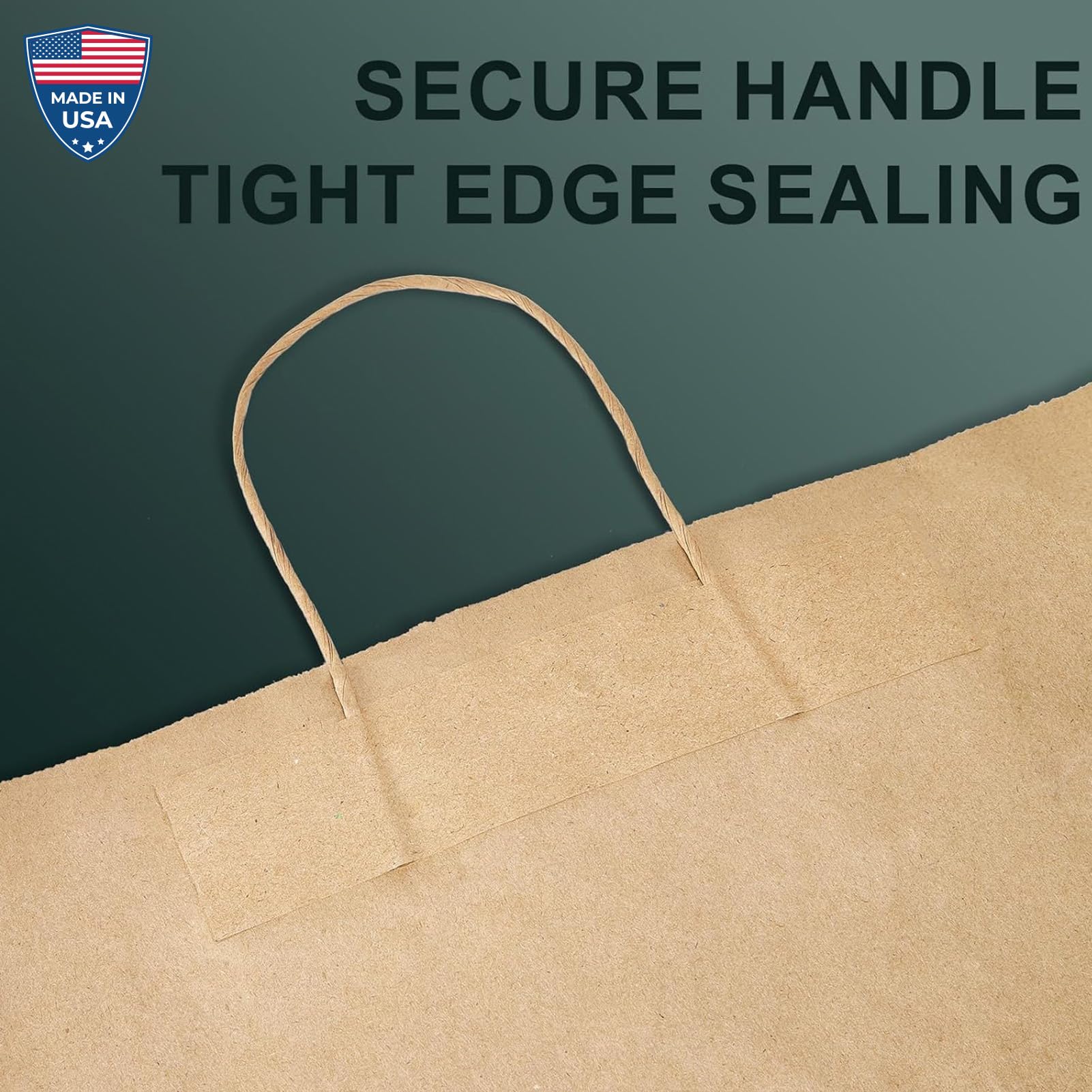 METRONIC Paper Gift Bags 5.25x3.75x8 50Pcs, Christmas Gift Wrap Bags with Handles, Brown Kraft Paper Bag for Small Business, Bulk Party Favors Bag for Birthday, Shopping, Retail, Made in USA