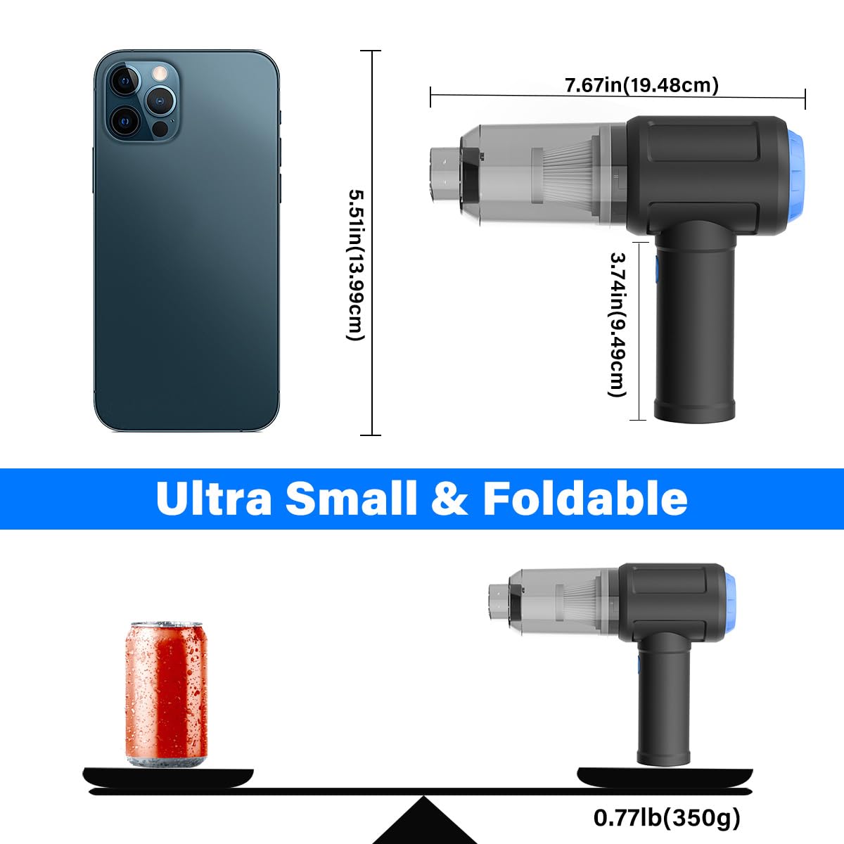 • Innovative 3 in 1 Multifunction:It is not only a mini vacuum cleaner, but also an air duster and air blower.One end of the machine is connected to the nozzle for vacuuming, and connected to the vacuum slot, which turns into an air pump for travelling, and your vacuum storage bags are airtightly vacuum-packed. while the other end is connected to the nozzle for blowing dust. Nice price and multiple combinations make this computer vacuum cleaner a perfect gift for your family members or friends.