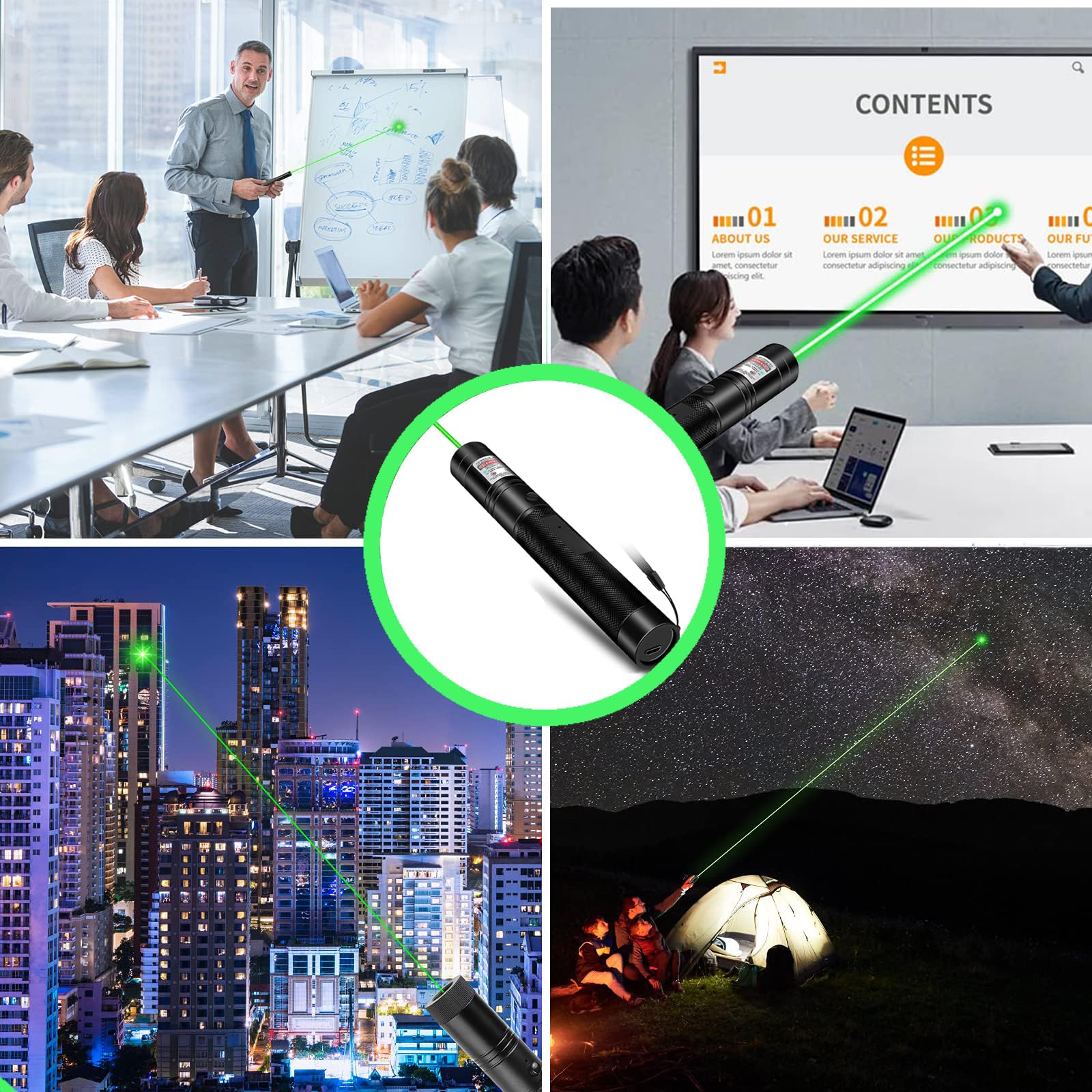 👩🏫 Multiple Uses : This green high power laser pointer can not only bring endless fun, You can also use the green laser pointer for presentations, outdoor, camping, hunting, hiking, etc.