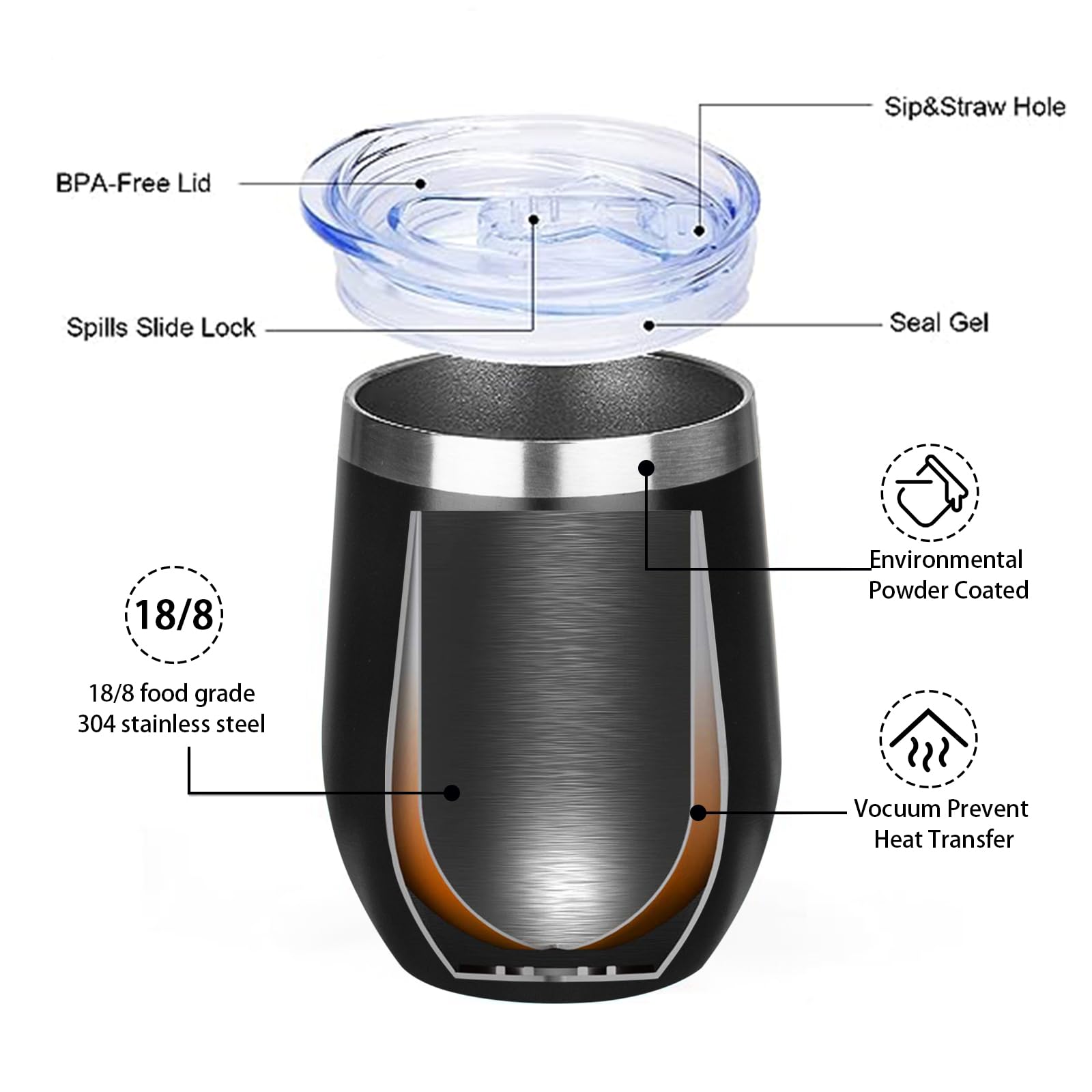 • WHAT YOU GET - 1*Stainless Steel Wine Tumbler + 1* Wine Tumbler Lid; Our insulated wine tumblers have undergone strict quality inspections.If you have any quality problems with your purchase, please contact us. Your satisfaction and love are our greatest encouragement.
