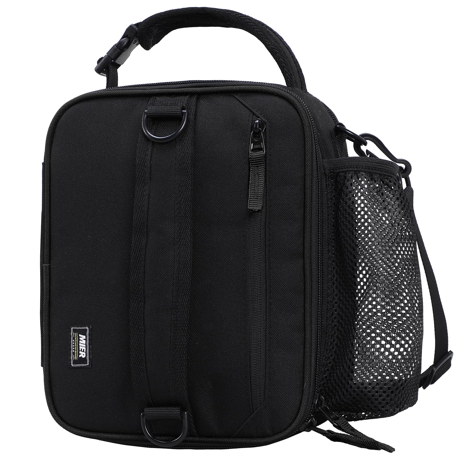 MIER Expandable Lunch Bag Insulated Lunch Box for Men to Work Travel Portable Lunchbox Bags with Shoulder Strap and Water Bottle Holder, Black
