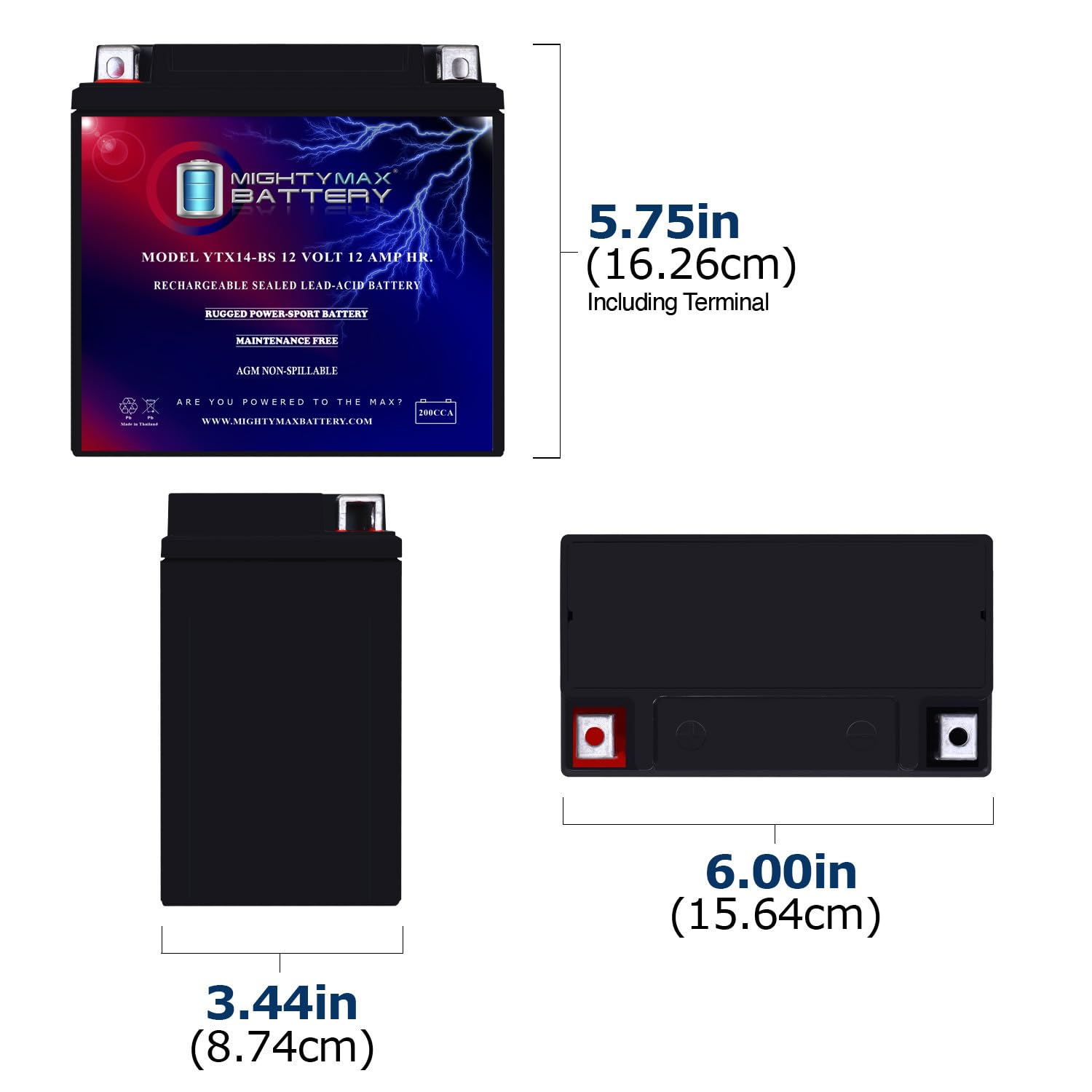 Mighty Max Battery YTX14-BS - 12 Volt 12 AH, 200 CCA, Rechargeable Maintenance Free SLA AGM Motorcycle Battery