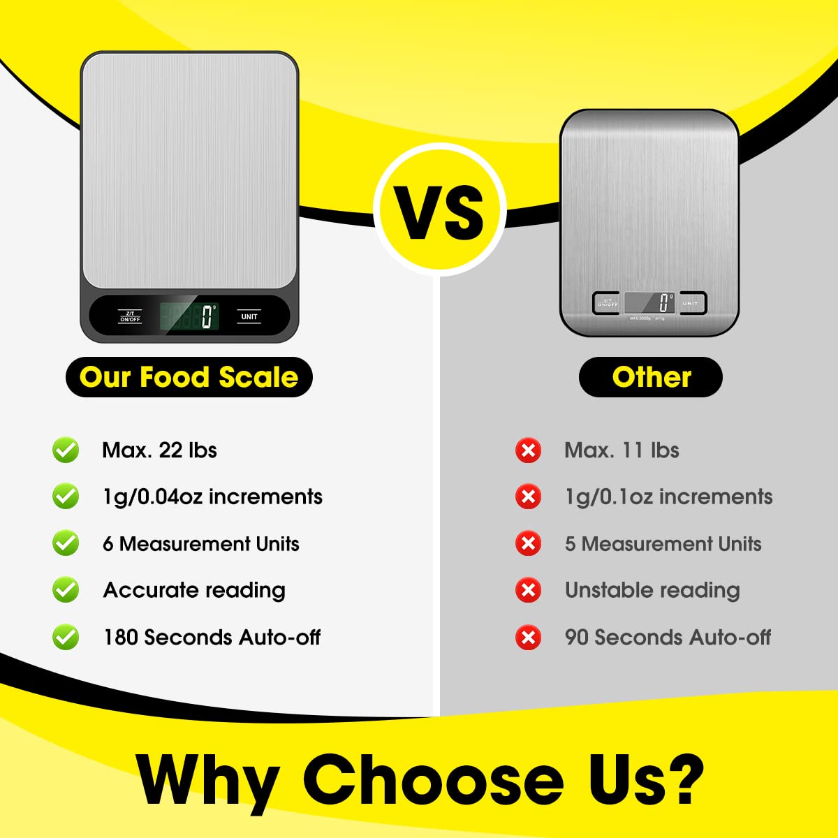 • 【Precise Weight】 10kg/22lb capacity, 1g/0.1oz resolution, Great for cooking, baking, weight loss, Meal Prep, Coffee, Package, Postage.
