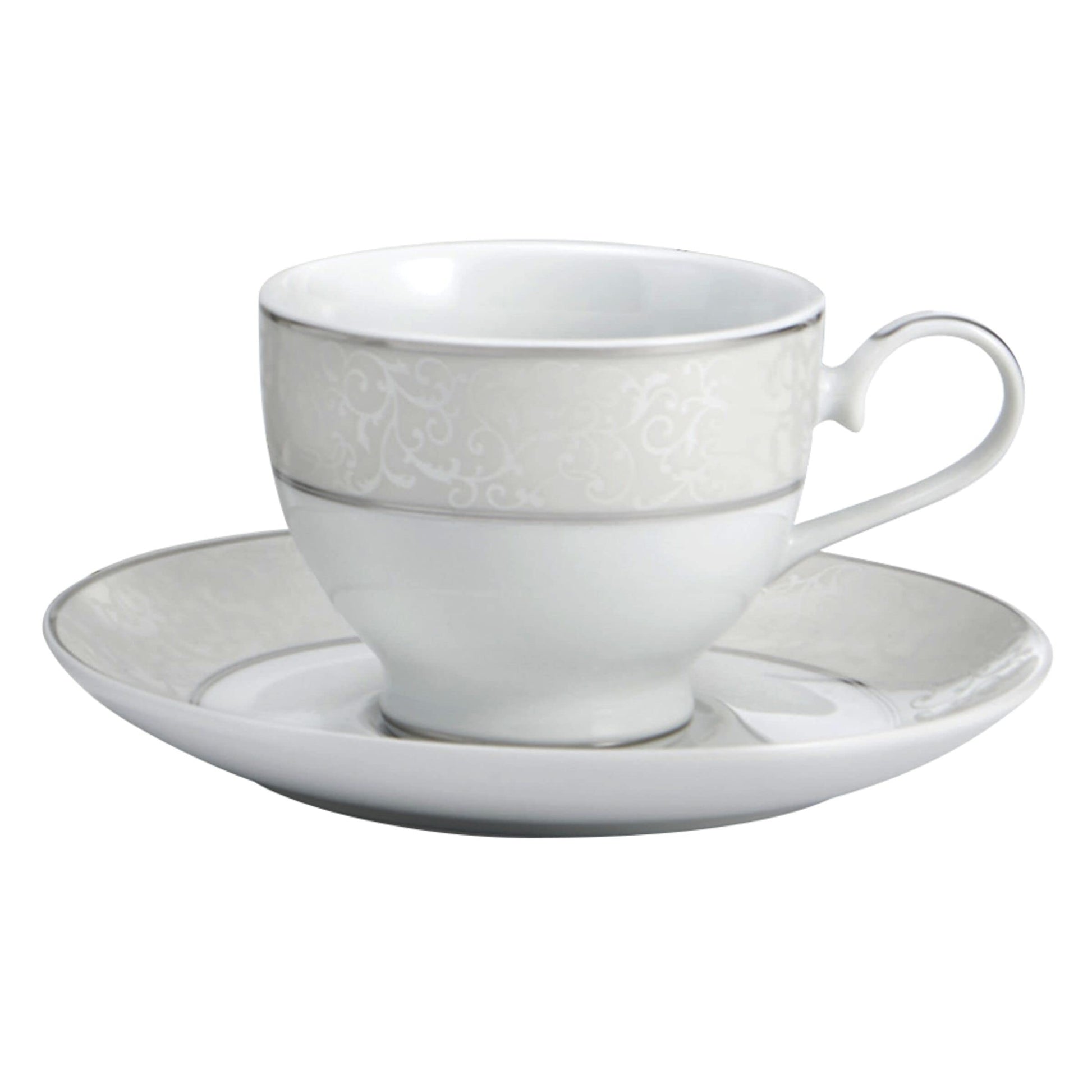 • CLASSIC DESIGN: the Parchment dinnerware collection from Mikasa features a gentle gray border embellished with beautifully detailed scroll design.
