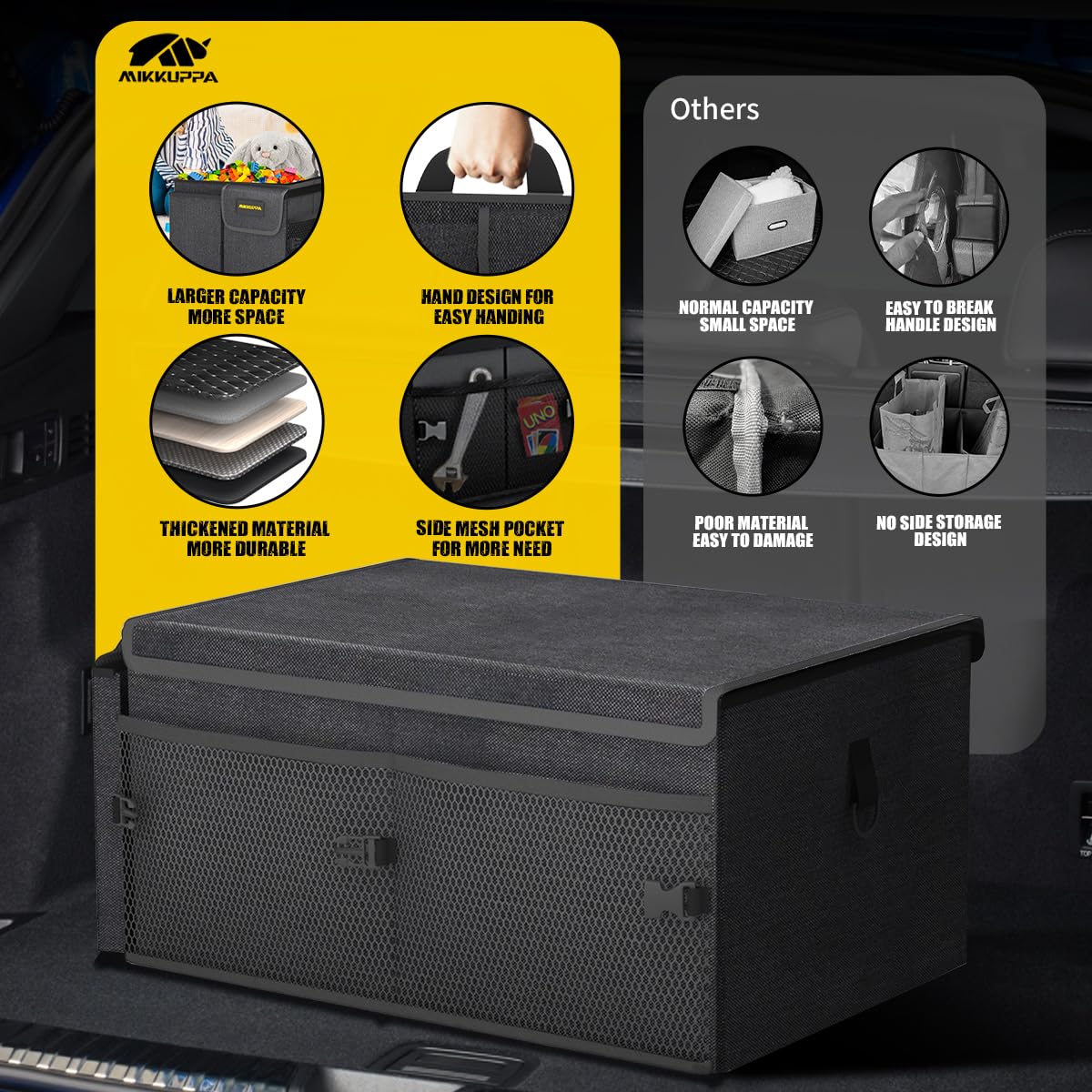 MIKKUPPA Car Trunk Organizer - 65L Collapsible Trunk Organizer with Lid, Sturdy Car Storage for SUV Auto Truck Van with Adjustable Straps and Non Slip Bottom (Black)