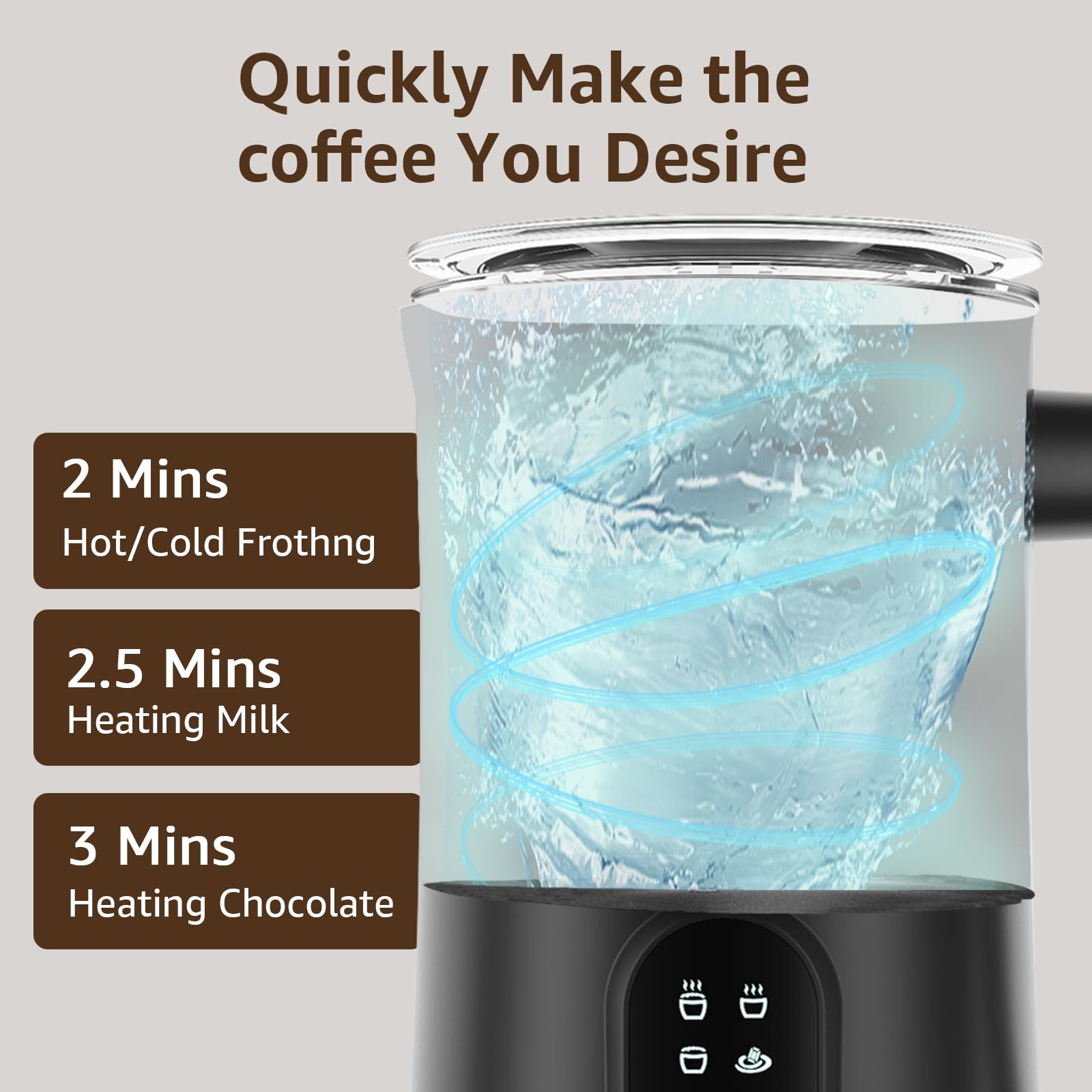 • Quick Heating: Our milk frother heats milk to an ideal 140°F-149°F in 2-3 minutes. The right temperature retains the nutritional value of the milk and enhances its flavor and texture