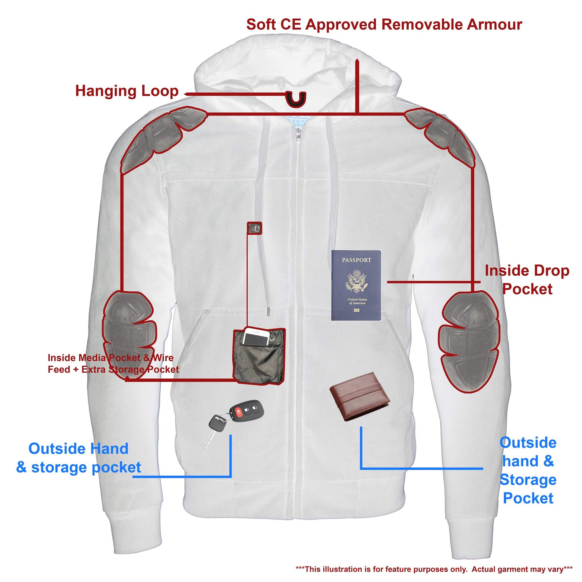 Milwaukee Leather MPM1788 Men's Black CE Approved Armored Riding Hoodie Sweater w/Aramid by DuPont Fibers - Medium