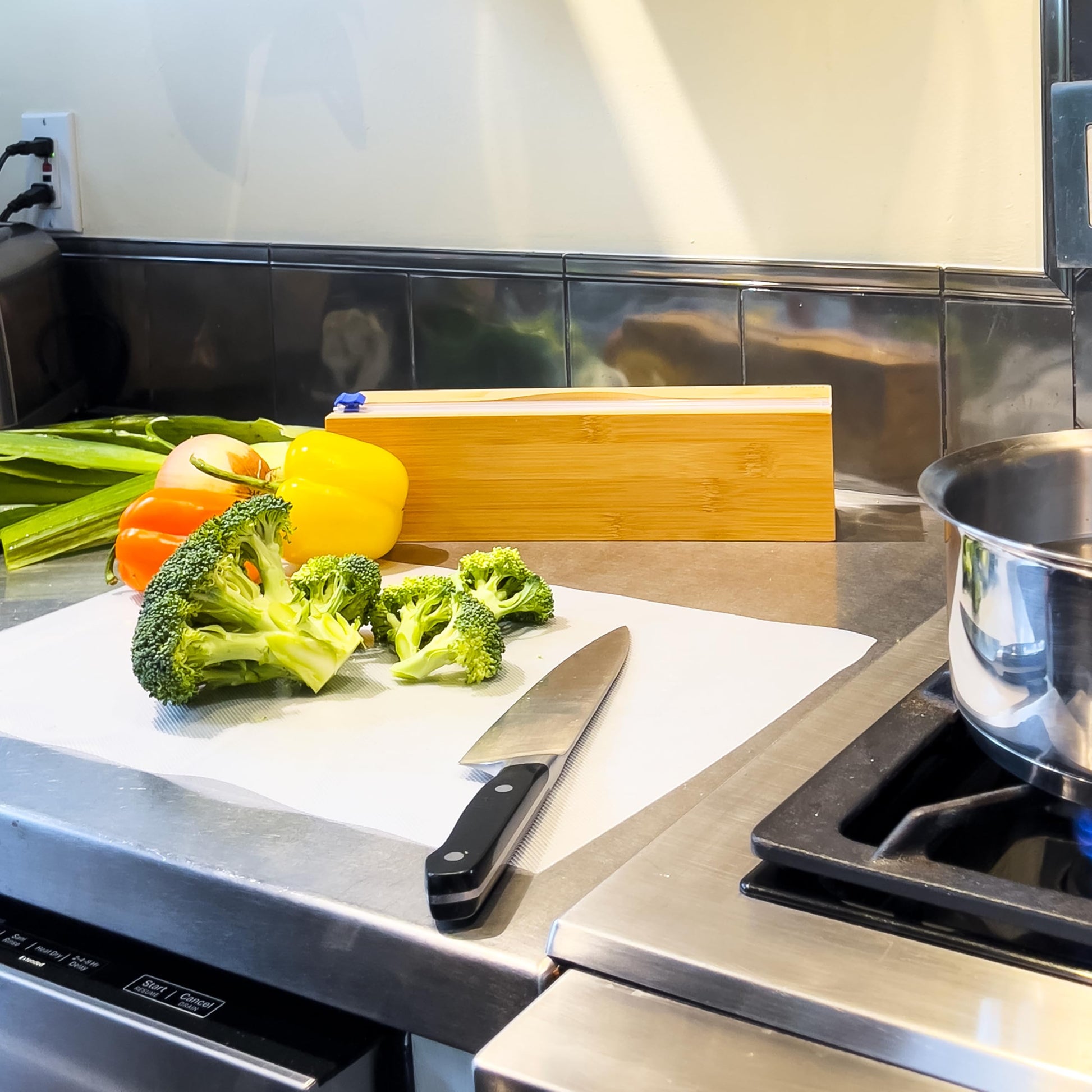 Upgrade your cutting game with E-Z Board and eliminate the hassle of traditional cutting boards.