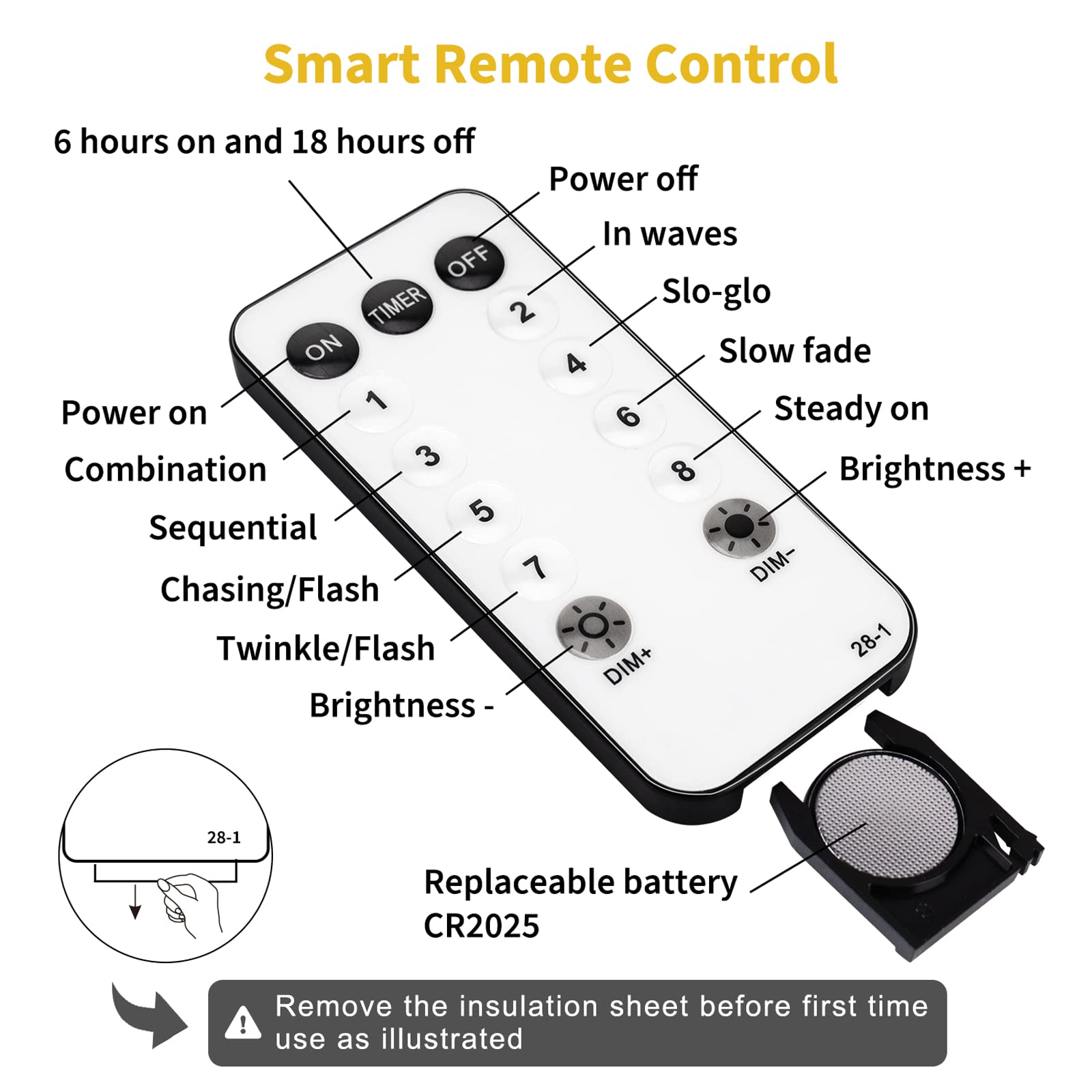 • Timer Functions and 8 Mode Lights: The rv globe lights have 8 lighting modes, namely combination, in waves, sequential, slo-glo, chasing or flash, slow fade, twinkle and flash, and steady on. The rv outdoor lights also have a memory function allowing you to set your specific mode and use the timer function on the remote to turn on the lights for 6 hours and off for 18 hours automatically every day.