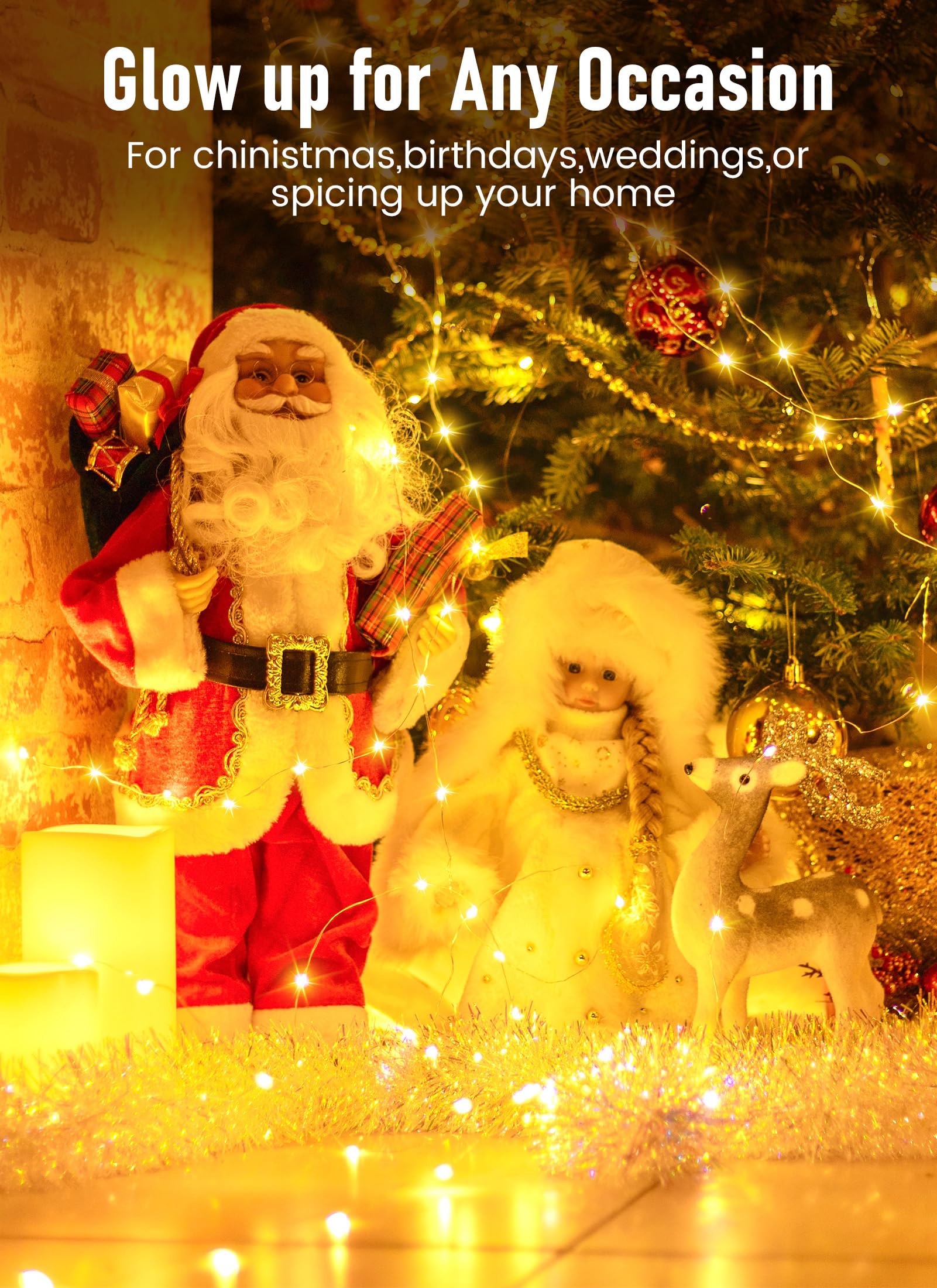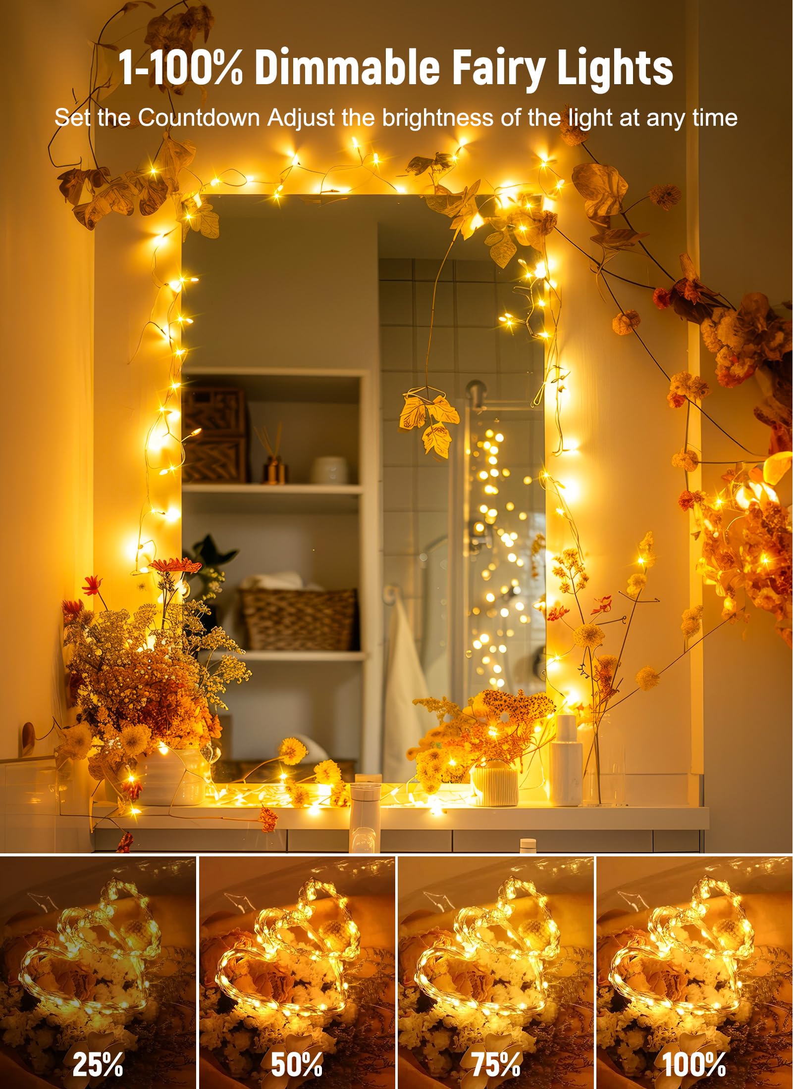 • Upgraded Beautiful Fairy Lights: Introduce a stunning LED light string, consisting of 33 feet flexible silver wire, 6.7 feet power cord and 100 energy-saving LED bulbs, USB-powered fairy lights emit a soft, warm light, suitable for indoor and outdoor use. With the remote control, you can easily turn on and off the lights, control the brightness, and adjust the lighting mode. Make it the perfect embellishment for your home decoration