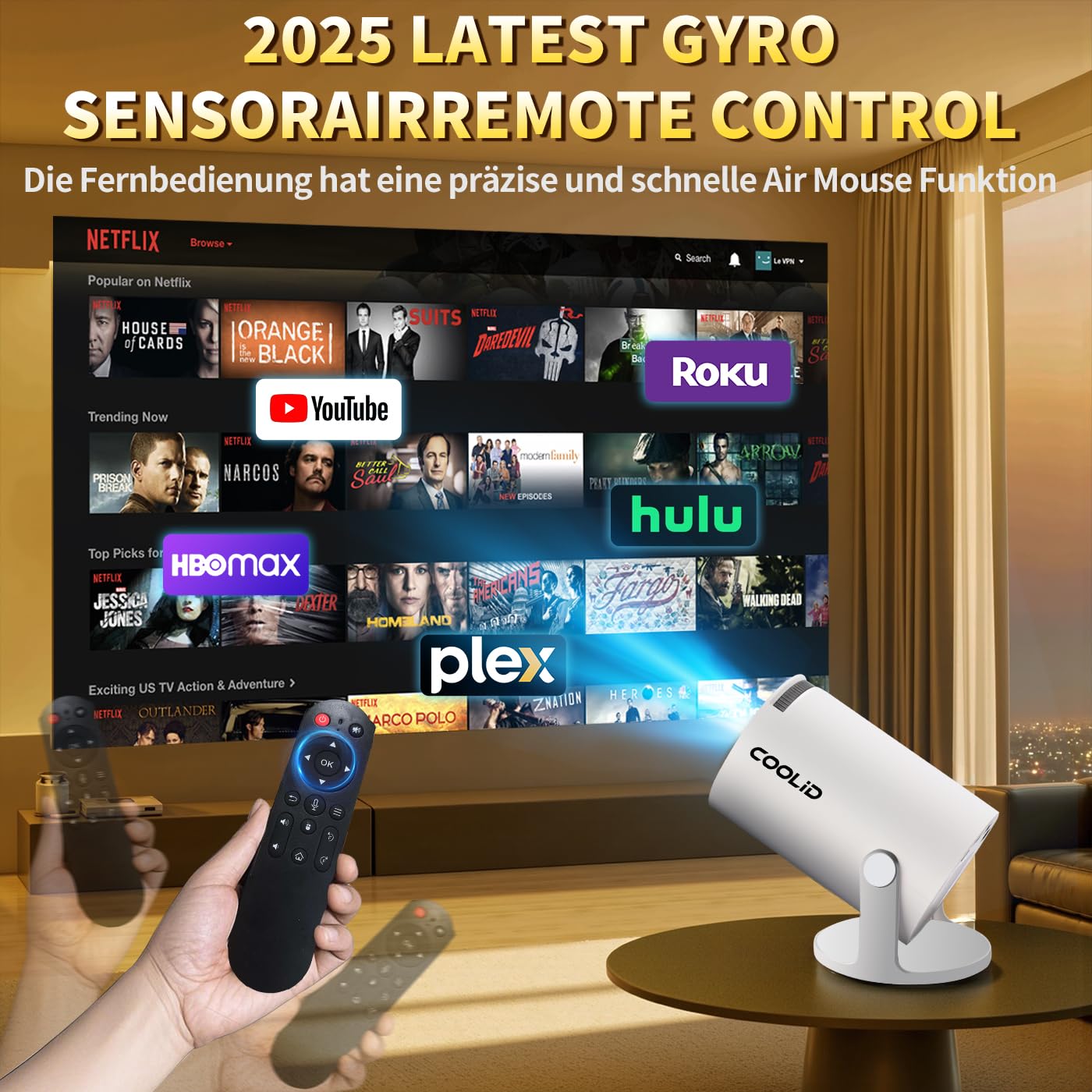• 【Smart Projector with Built-in Apps】This 4K projector is powered by Android 11 OS with 1GB of RAM and 8GB of storage for smooth and intuitive use. It supports both mouse and remote control for increased usability. The pre-installed Android TV operating system provides direct access to a wide range of videos, including content from Netf1ix and YouTube, without the need for a separate TV stick. It's easy to create a private cinema in your home.