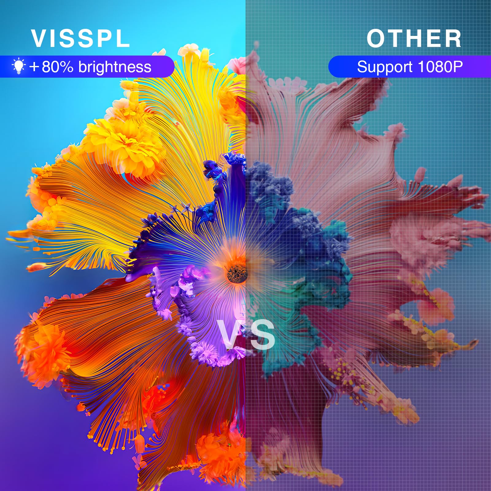 • 【Full HD 1080P & Eye Protection】The VISSPL 2025 projector supports 1080P resolution for stunning visuals. Powered by advanced LED technology and a uniform illumination method, our projector guarantees exceptional image quality, delivering a dynamic and color-vibrant effect, minimizing the impact of blue and direct light. Perfect for safeguarding children's eye health! For optimal performance, we recommend using video projector in a dark environment to fully enjoy its capabilities.