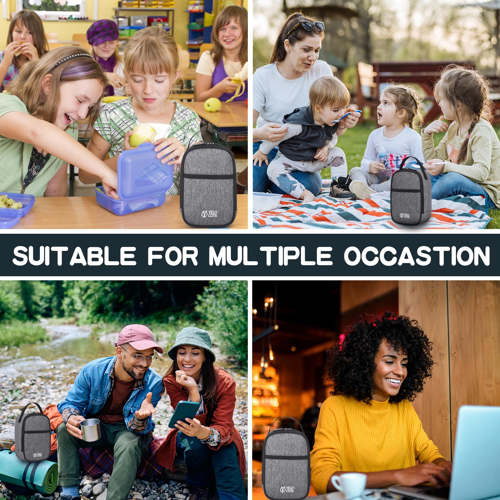 • Long-Term Insulation -- Lining with Eco-friendly EVA material, interior padded with 5mm thicken insulation pearl foam, protect with 300D polyester & composite tarpaulin outer fabric, Yelocota lunch box is designed with triple Insulated to keep food stay cold/warm/fresh for hours.