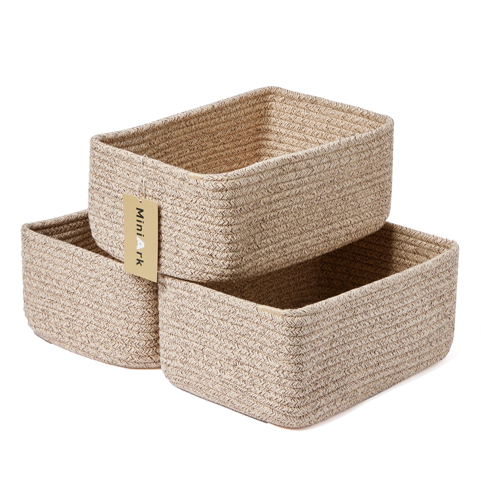 MiniArk Small Storage Baskets for Organizing | Closet Organizer Bins | Shelf Toy Basket | Woven Rope Baskets | Cube Decorative Box | Shallow Basket | 11.5x7.5x4.7” | 3 Packs Mixed Brown