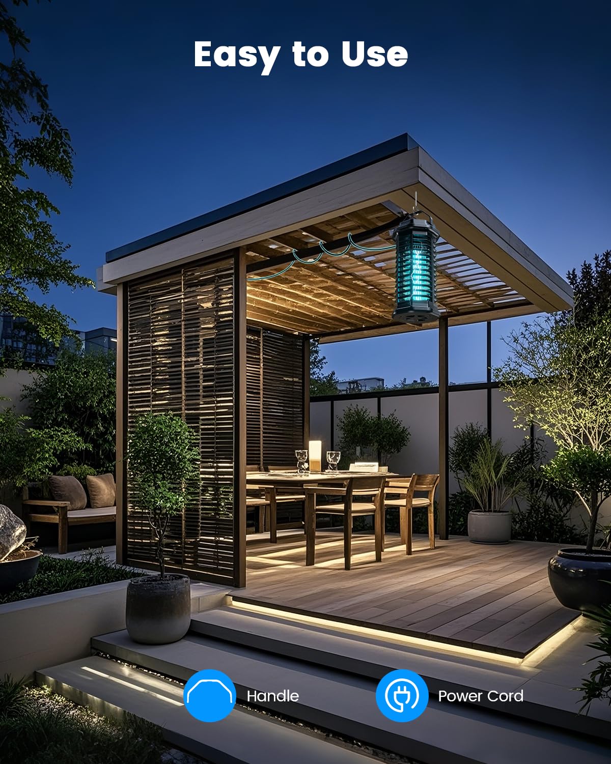 • 【High-Efficiency Mosquito Zapper】Equipped with a 15W ultraviolet bulb that effectively lures mosquitoes from up to 2,100 square feet, this insect zapper features a robust 4,200V electric grid to instantly terminate pests on contact—ensuring no escape and a mosquito-free environment