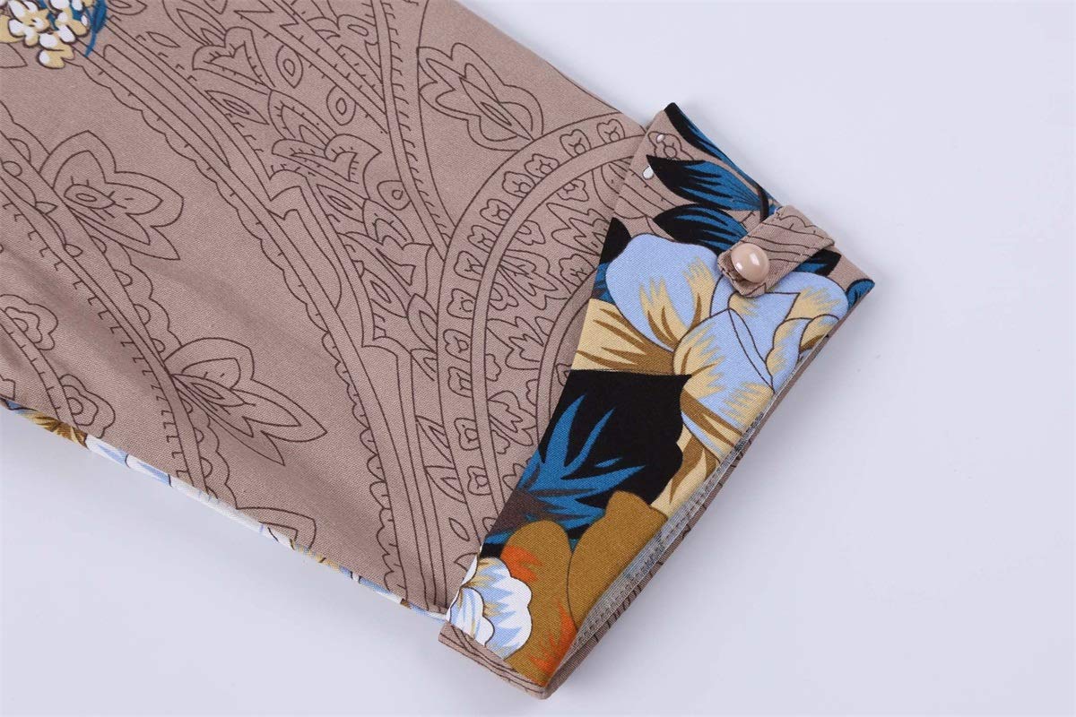 MINTLIMIT Women's V-Neck Floral Half Sleeve Midi Fit Flare Retro Dress Cocktail Dresses (Light Brown,Size XL)