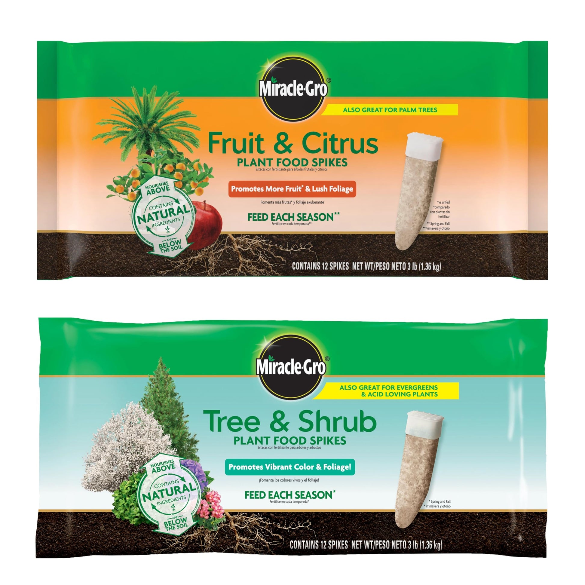 • This bundle includes one 12 pack of Miracle-Gro Fruit & Citrus Plant Food Spikes and one 12 pack of Miracle-Gro Tree & Shrub Plant Food Spikes