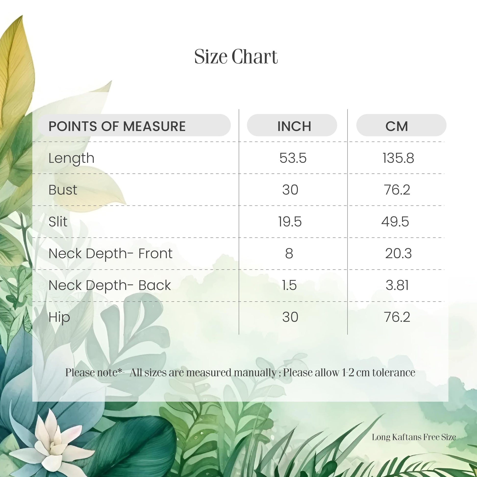 • Everyone is different which is why we have kept them as One Size. These kaftans can fit for US 12 14 16 18 20 22 plus size dresses. They are extremely comfortable to wear and light.