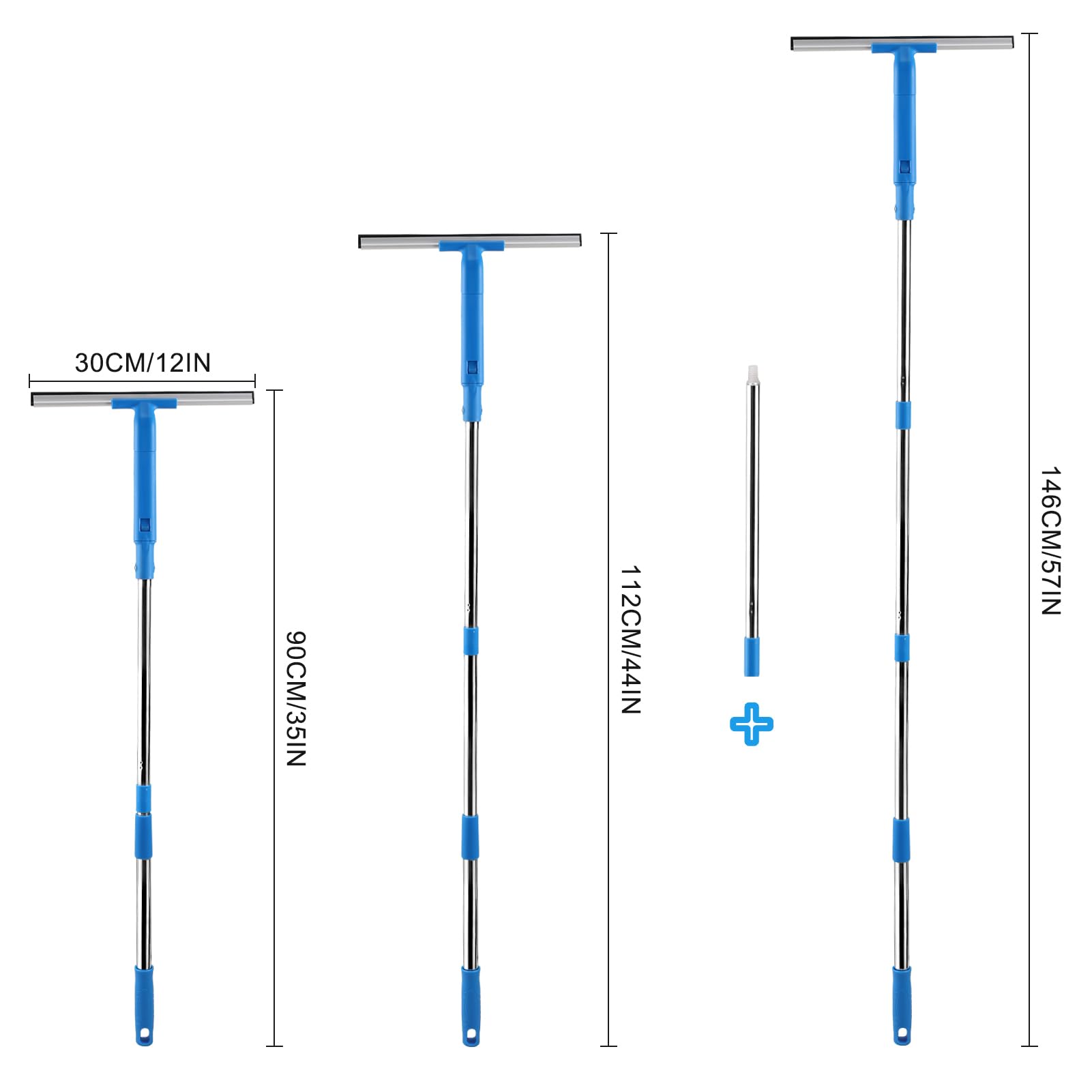 • Multi-function: With the squeegee kit and microfiber washer, this window cleaning kit can clean low places, such as shower mirror door. Attached with extension poles, it can allow you to clean high windows and car windshield.