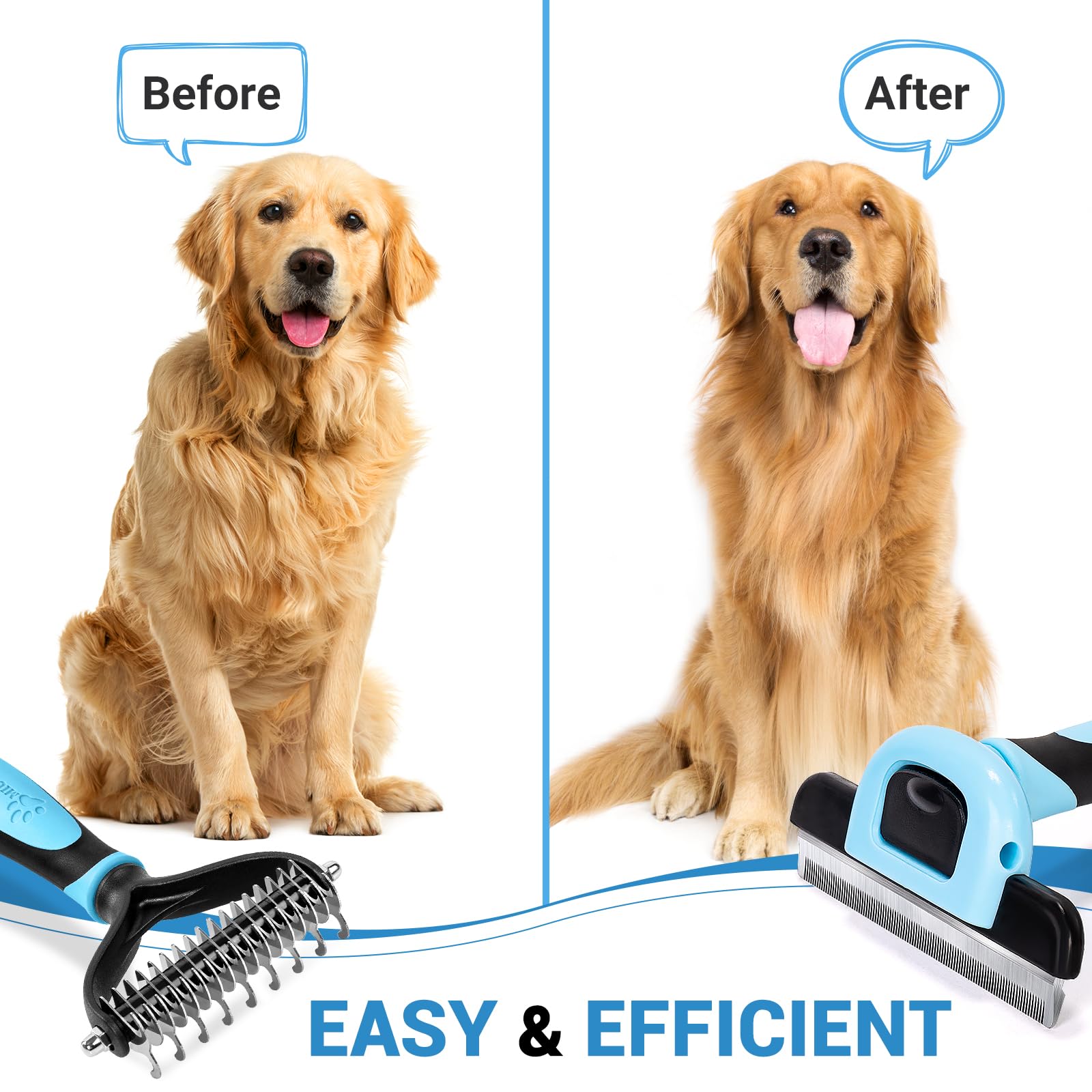 • Effectively Reduce Tangles and Shedding: Regular use effectively reduces tangles and hair shedding. It is the ideal pet grooming tool and dog brush for shedding cats and dogs of all sizes - medium and long hair dog combs