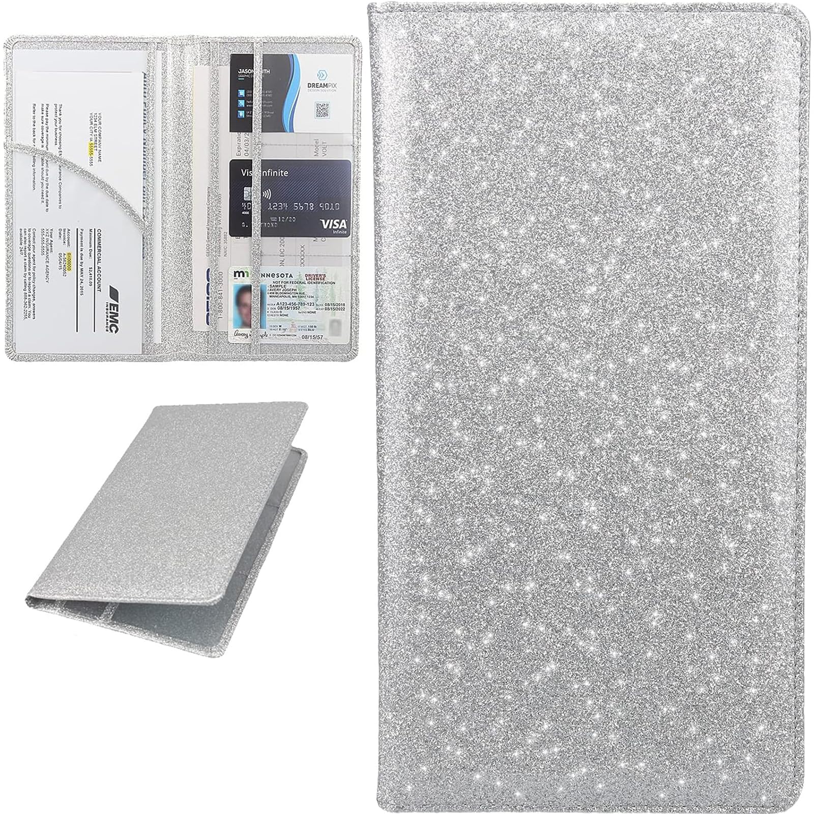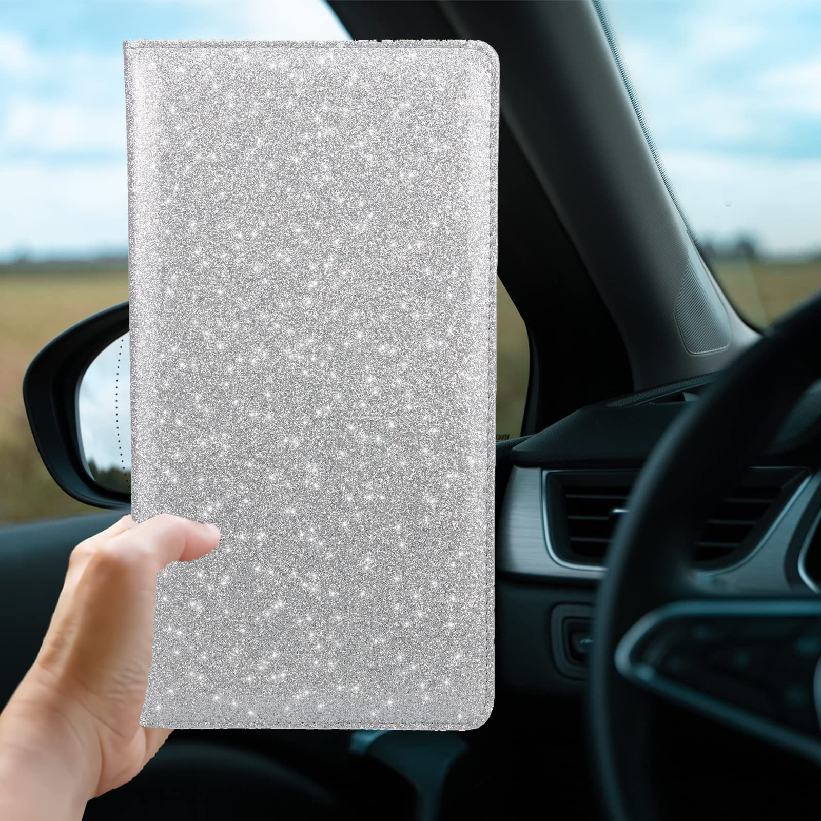 Miunice Car Registration and Insurance Holder, Bling Premium Pu Leather Vehicle Glove Box Organizer, Prefect Leather License Registration Holder for Driver License,Cards & Essential Documents (Silver)