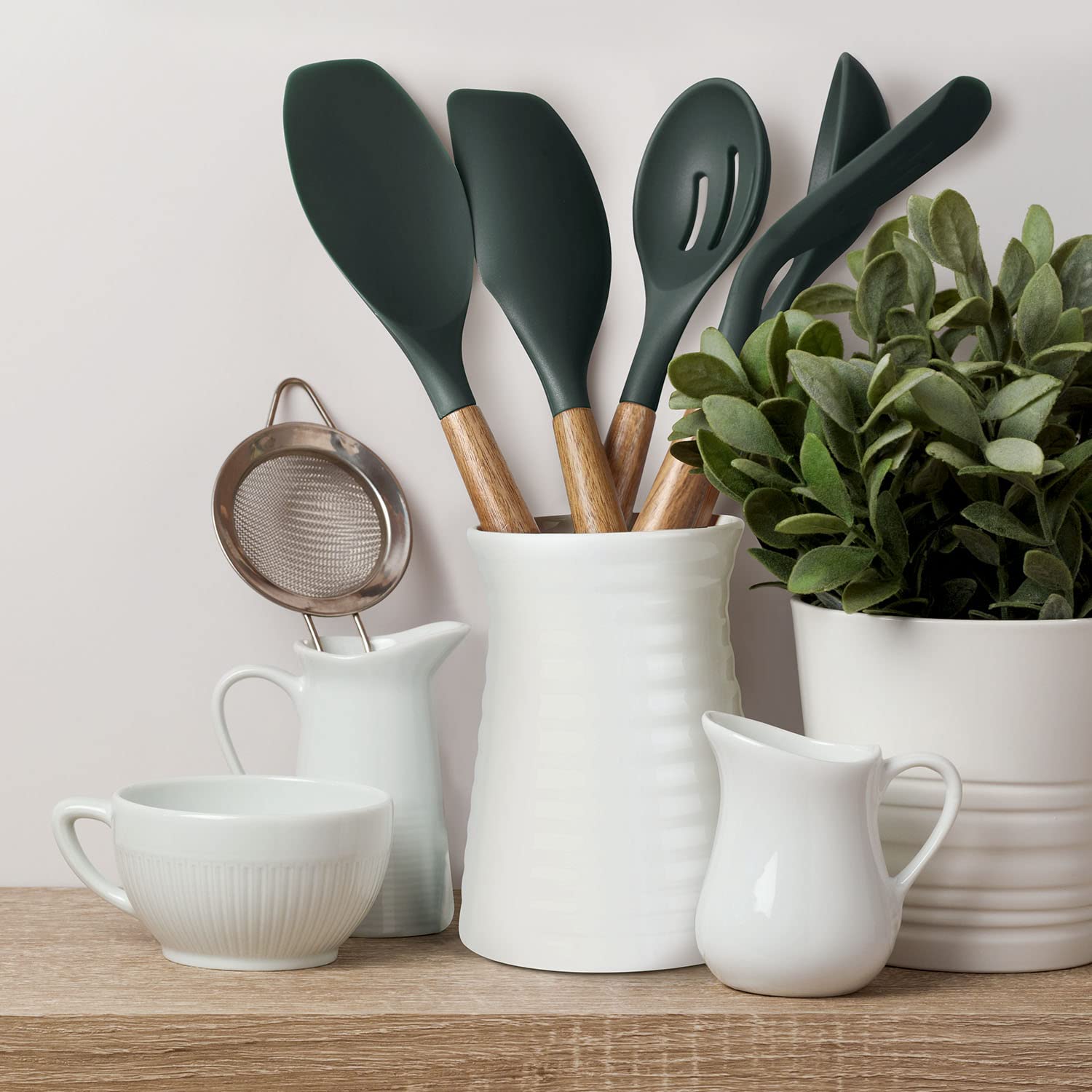 Miusco Non-Stick Silicone Cooking Utensils Set with Natural Acacia Hard Wood Handle, 5 Piece, High Heat Resistant (Green)