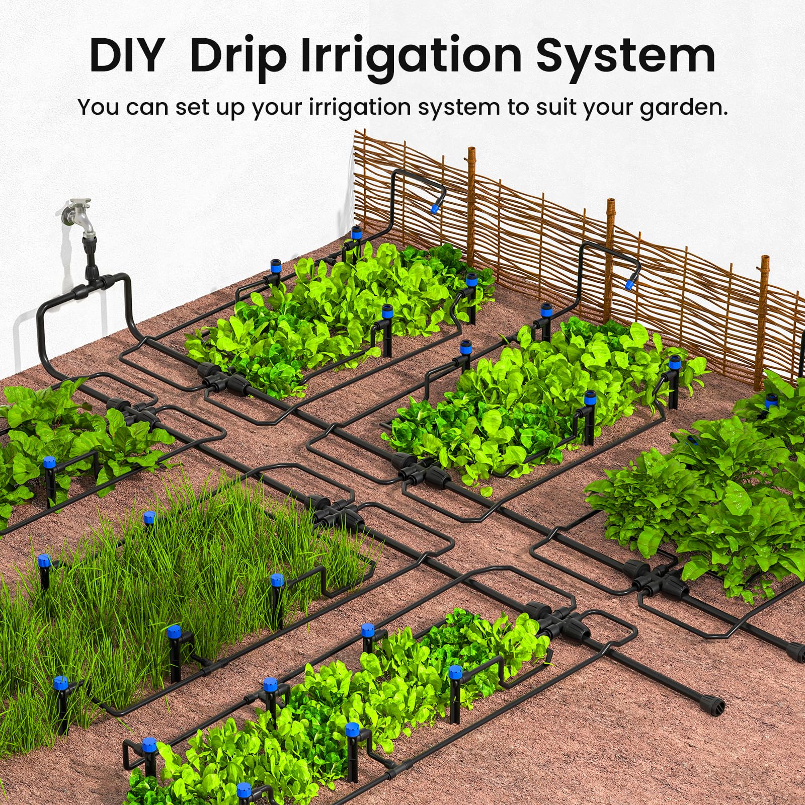 • ✔Innovative Quick Connector Technology:Featuring a new quick connector design, our plug-and-play irrigation tube ensures a secure fit, preventing leaks and making installation a breeze.Takes only 10 minutes from setup to full operation, saving you time and effort.