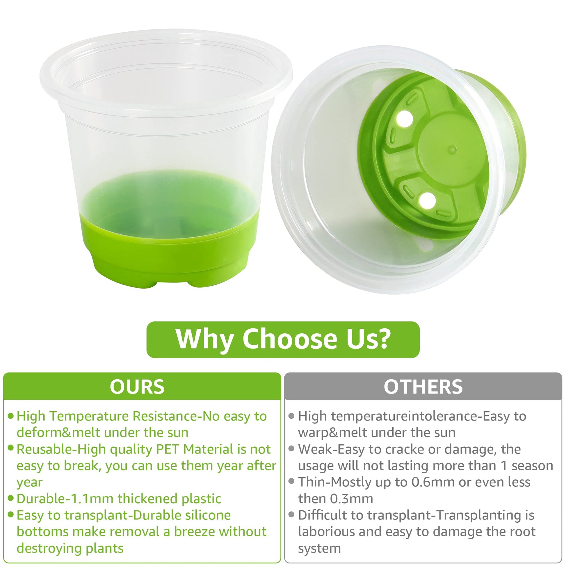 • Eco-Friendly and Durable: Made of strong PP material, these plant starter pots can be reused season after season and won't wrinkle and deform easily. Reduce waste and save money with these reusable plant pots.