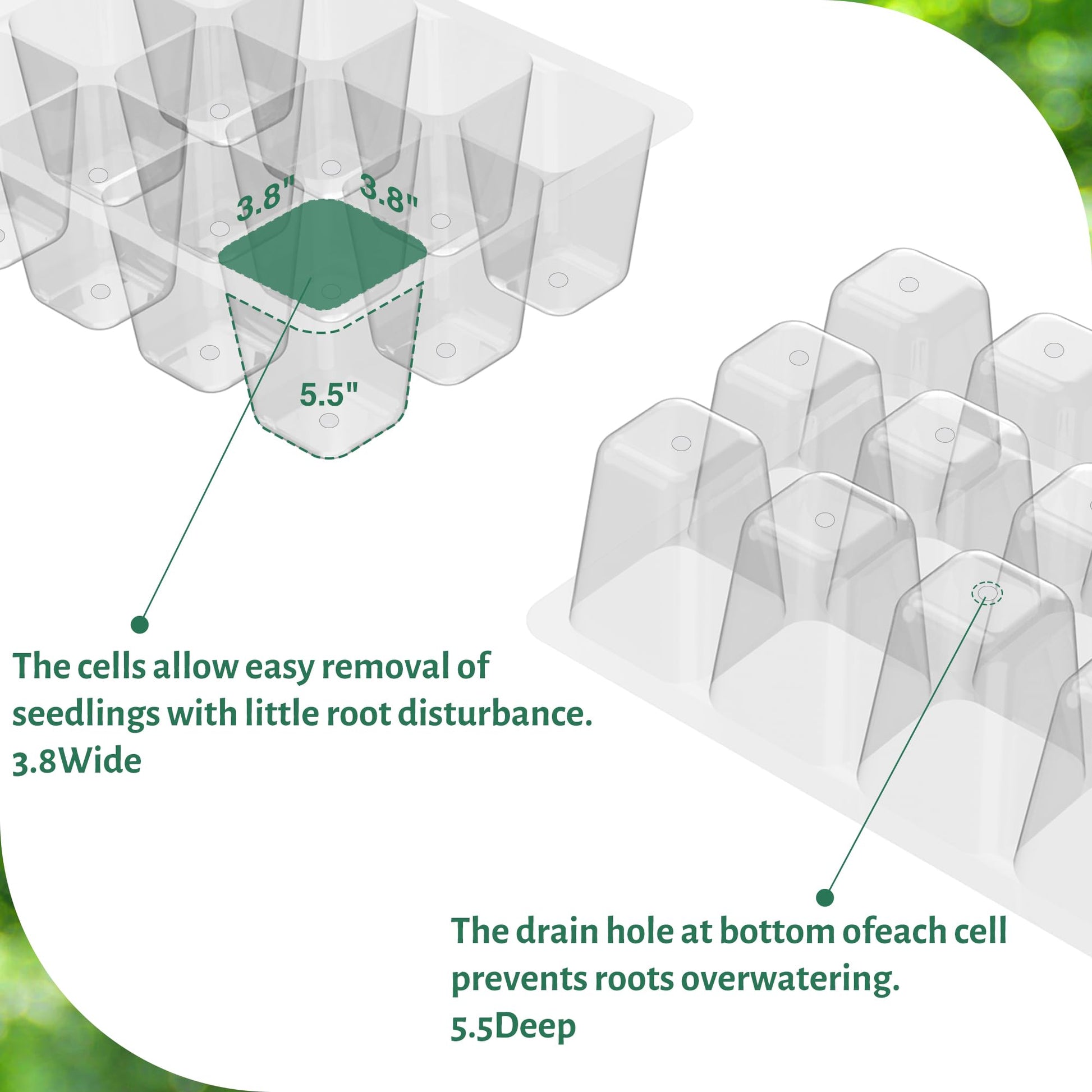 • 【Durable and Reusable Construction】Crafted from high-quality, BPA-free plastic, these trays are built to withstand extreme temperatures and rough handling. Each cell is reinforced to support up to 10+ lbs, ensuring durability and longevity. Whether you're a hobbyist or a professional gardener, these trays are designed for repeated use, offering a sustainable and cost-effective solution for your gardening needs.