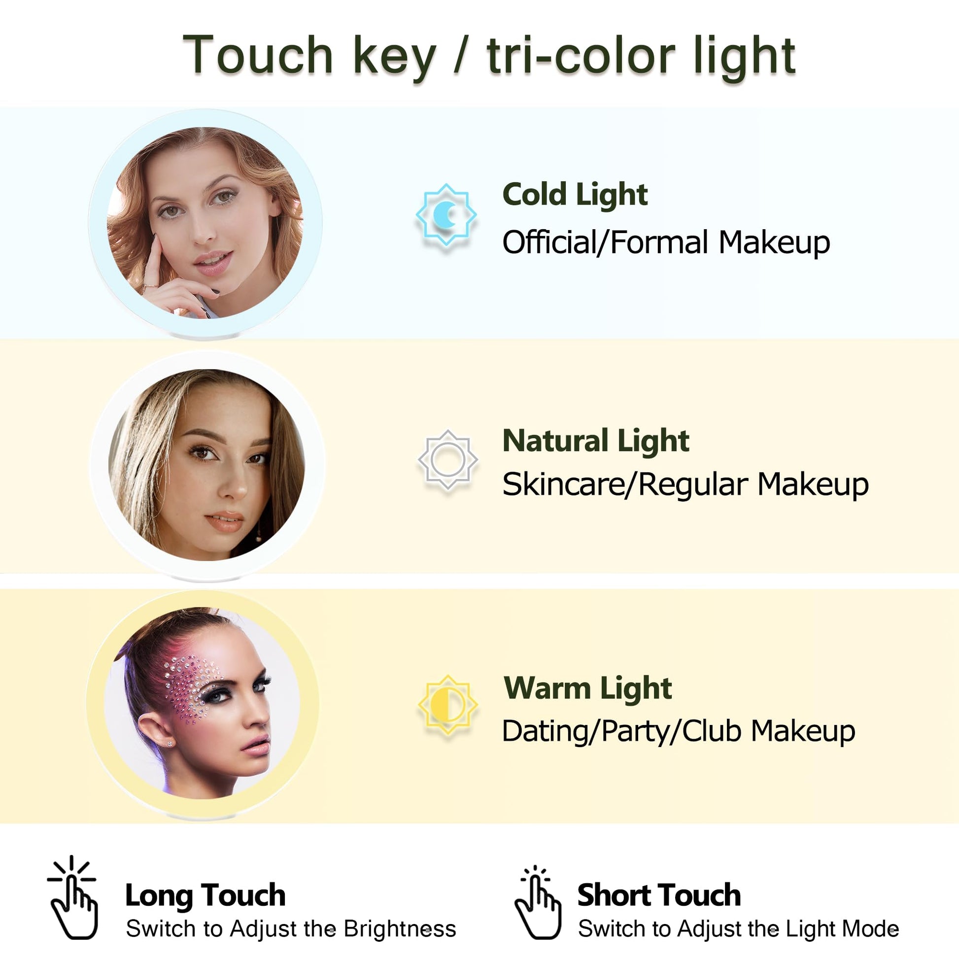 MIYADIVA 20X Magnifying Mirror with Light, Travel Magnifying Mirror, 1X/20X Vanity Mirror with Light, Adjustable Handle Travel Makeup Mirror, Touch Switch Light up Mirror for Plucking Eyebrows