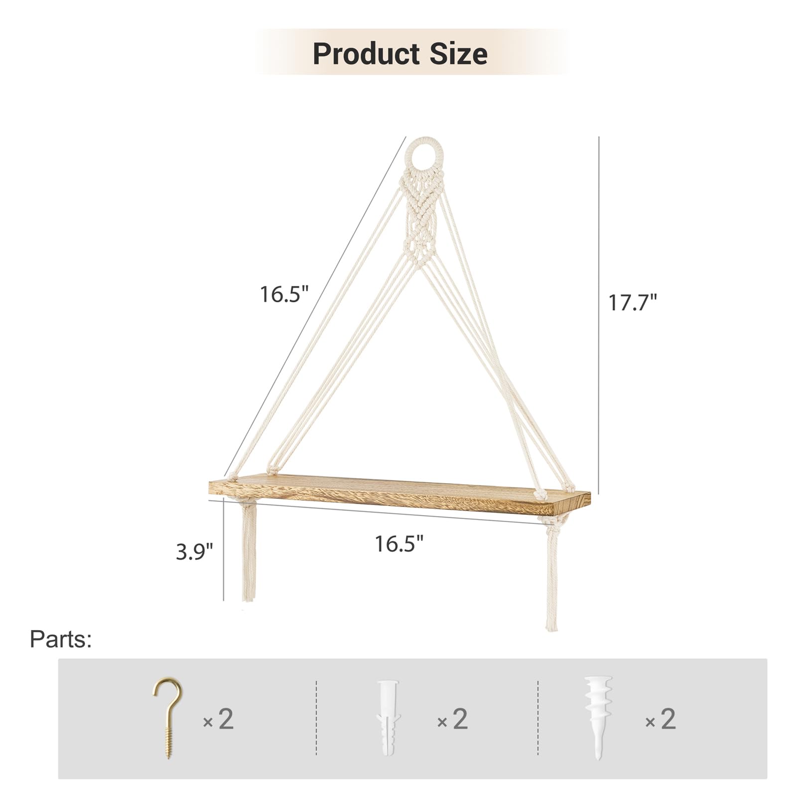 • Great Gift: The hanging shelf is very suitable for people who love boho style. If you are looking for the perfect decorations in a minimalist style, or wanna give gifts to people who like urban bohemian decorations or unique home furnishings, this will be a great housewarming gift.