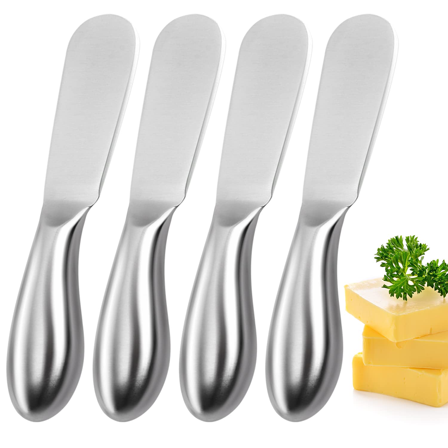 • 【Cheese Spreaders Set of 4】The cheese spreader knife measures 13.2 cm/5.3 inch long, and there are 4 pieces of butter spreader knives in the package. The multipurpose cheese knife features good size and rounded handle. Proper size makes it easy to grip and control, and easy to store without taking too much space. There is a little edge to the knives for slicing hard cheeses easily