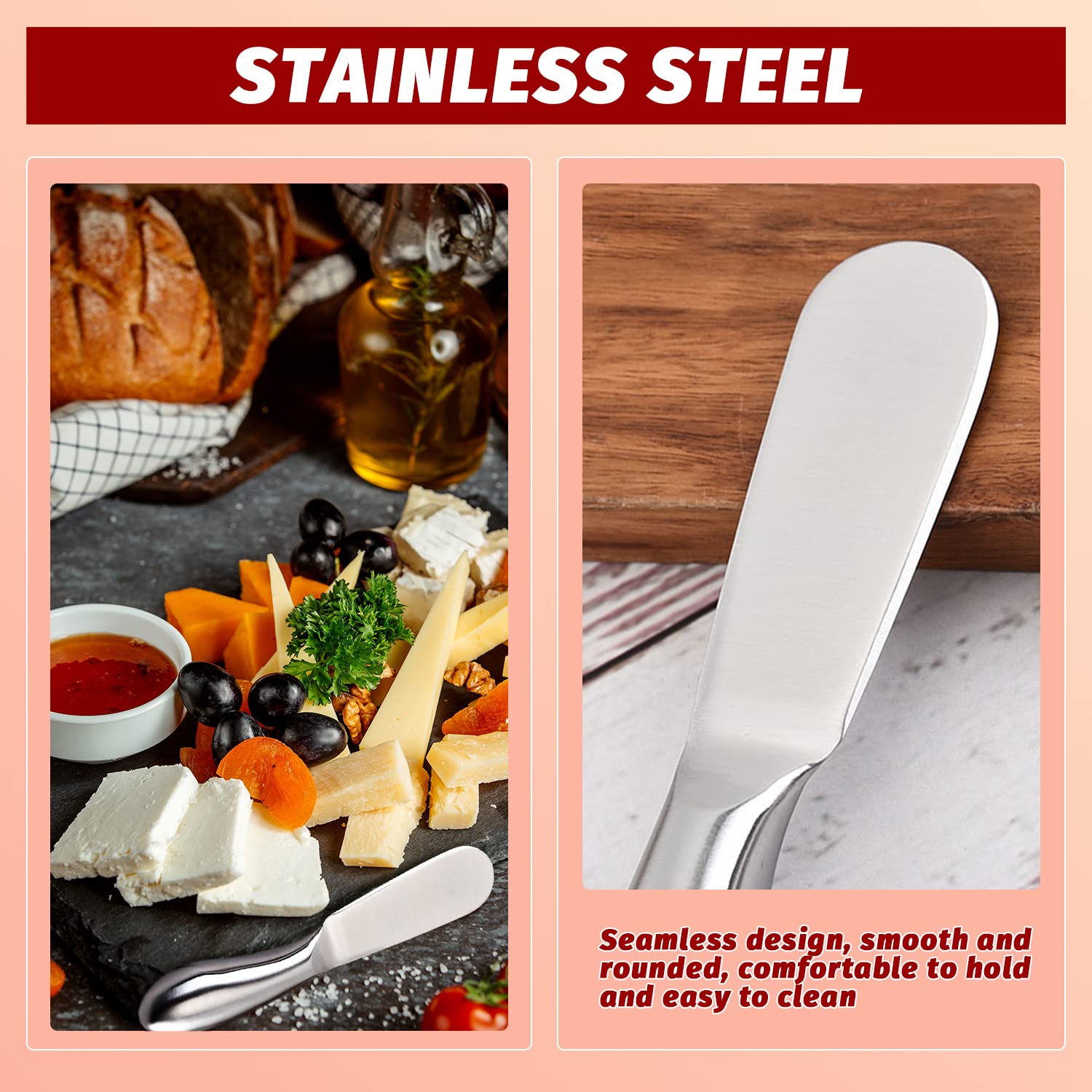 • 【Better Butter Spreader Knife】Butter knife spreader is constructed of all-one-piece durable premium food grade stainless steel, no seams, very solid, Anti-rust and sharp, brushed metal, heat-treated and tarnish-resistant, suitable for handling with any type of cheese and butter. This kitchen tools set has a classic design that go well with your existing flatware
