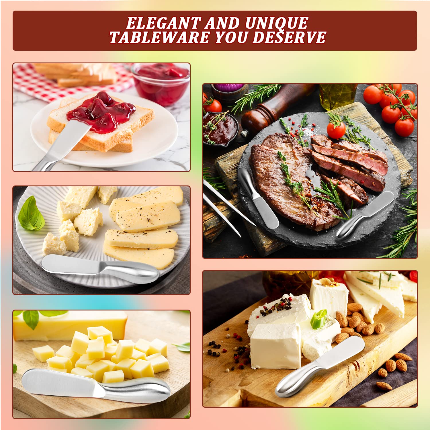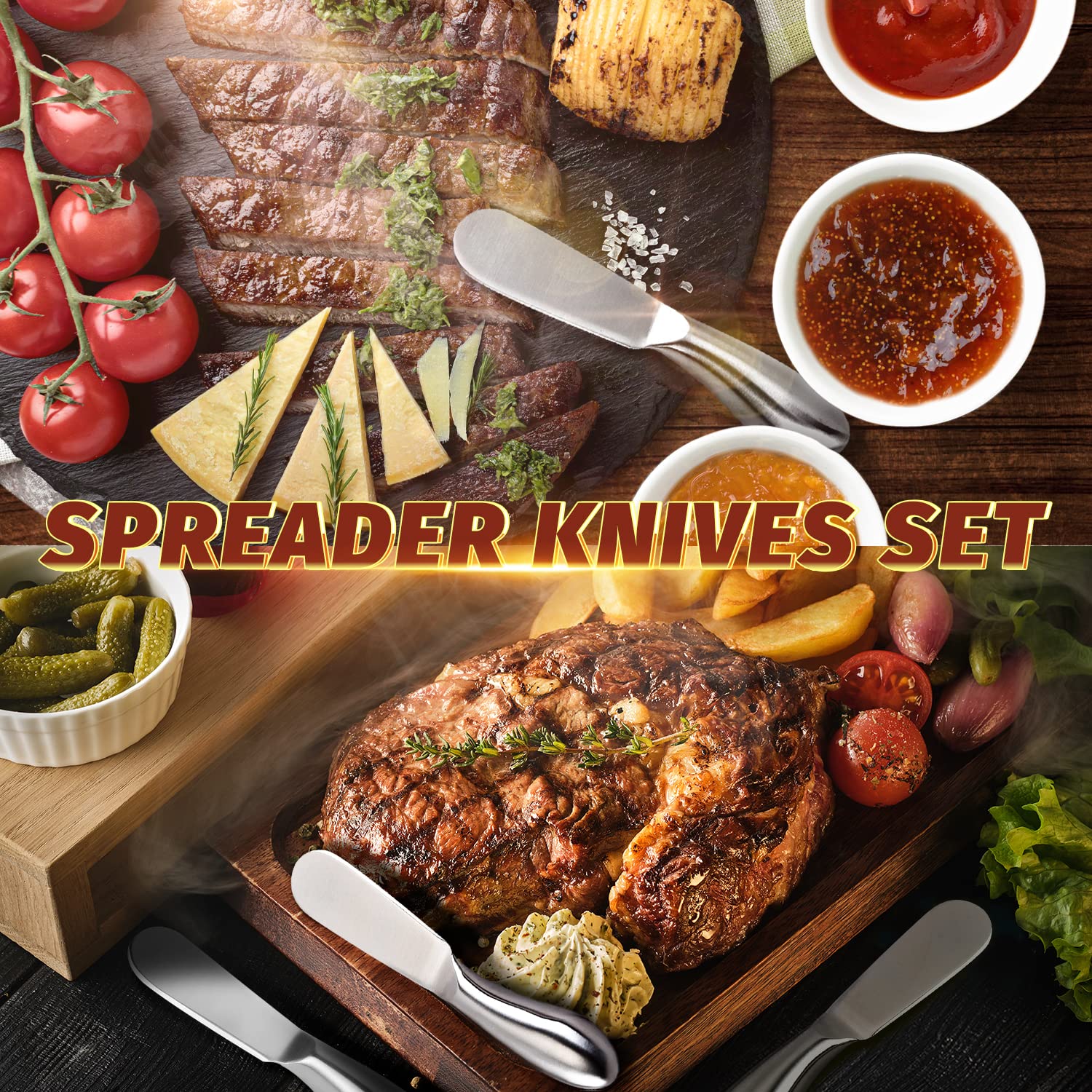 Mlurcu Butter Knives 4 Pieces Stainless Steel Cheese Butter Spreader Knife Set for Cold Butter, Cream Cheese, Jam, Pastry, Charcuterie, Multipurpose Kitchen Gadgets