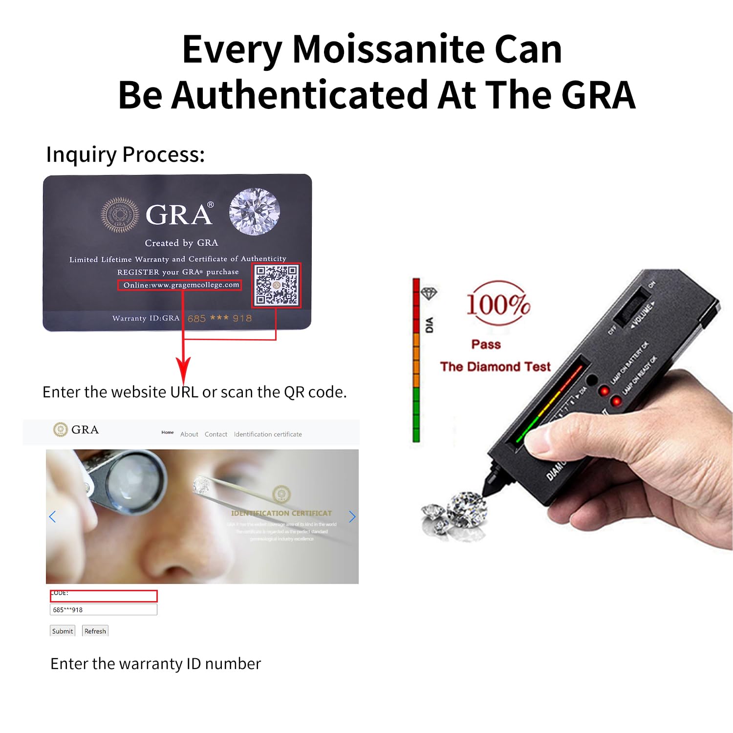 • Quality Moissanite:These moissanite earrings are made using 100% D-grade moissanite with a VVS1 high purity level, certified through the GRA official website to ensure authenticity