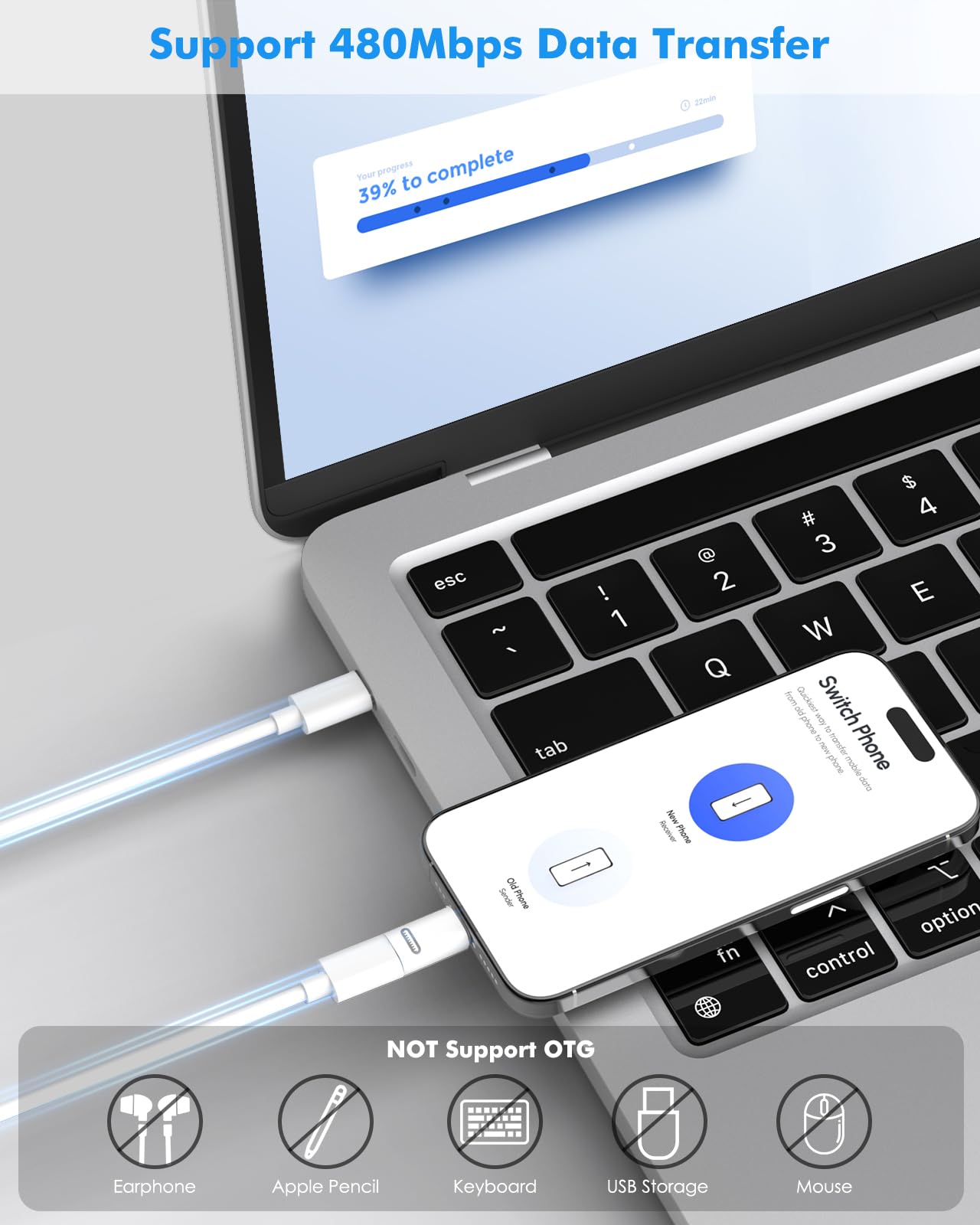 • ๐ˆ๐ฆ๐ฉ๐จ๐ซ๐ญ๐š๐ง๐ญ ๐๐จ๐ญ๐ž: ๐“๐ก๐ข๐ฌ ๐ฅ๐ข๐ ๐ก๐ญ๐ง๐ข๐ง๐  ๐Ÿ๐ž๐ฆ๐š๐ฅ๐ž ๐ญ๐จ ๐ฎ๐ฌ๐› ๐œ ๐ฆ๐š๐ฅ๐ž ๐š๐๐š๐ฉ๐ญ๐ž๐ซ ๐จ๐ง๐ฅ๐ฒ ๐ฌ๐ฎ๐ฉ๐ฉ๐จ๐ซ๐ญ๐ฌ ๐œ๐ก๐š๐ซ๐ ๐ข๐ง๐  ๐š๐ง๐ ๐๐š๐ญ๐š ๐ญ๐ซ๐š๐ง๐ฌ๐Ÿ๐ž๐ซ ๐›๐ž๐ญ๐ฐ๐ž๐ž๐ง ๐œ๐จ๐ฆ๐ฉ๐š๐ญ๐ข๐›๐ฅ๐ž ๐๐ž๐ฏ๐ข๐œ๐ž๐ฌ ๐š๐ง๐ ๐œ๐จ๐ฆ๐ฉ๐ฎ๐ญ๐ž๐ซ via MFI cable (๐จ๐ง๐ฅ๐ฒ). Do not support OTG, video and audio functions. Do not support any earphones, Apple Pencil 1st generation, mice, keyboards, USB flash drives, SD card readers, printers, microphones, HDMI converters, cameras,etc.
